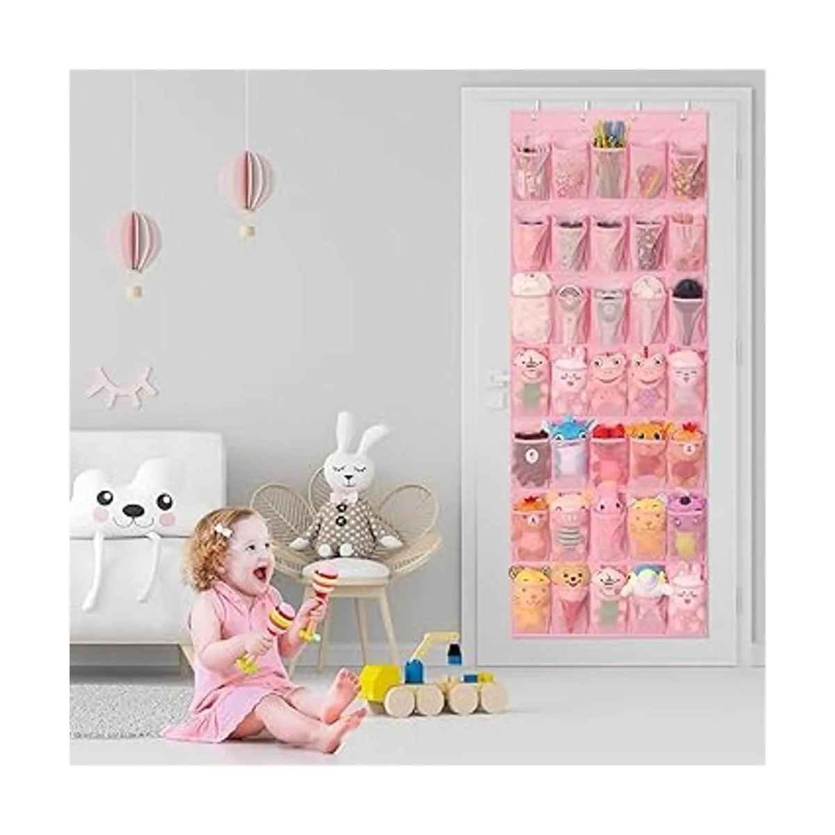 Regalo ideal y 100 garantía: ligero y fácil de colgar en casi cualquier lugar, los organizadores de bebé y el almacenamiento sobre la puerta no requieren herramientas para configurar; no más contenedores de almacenamiento grandes o cajas que ocupan más espacio. Gran regalo de inauguración de la casa para nueva mamá, regalos de baby shower para bebé recién nacido, regalo de Navidad para amigos. Cada entusiasta de la decoración de la habitación rosa estará encantado de recibir el organizador de almacenamiento para bebés. Ofrecemos 30 días de garantía de devolución de dinero, no dudes en enviarnos tus problemas, sin riesgo de obtener uno