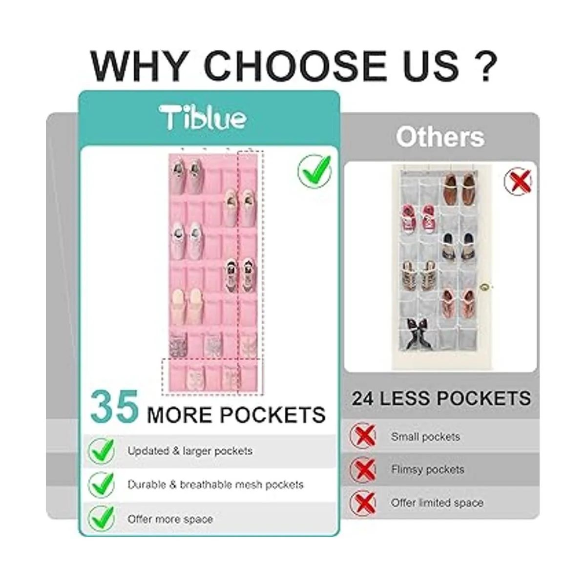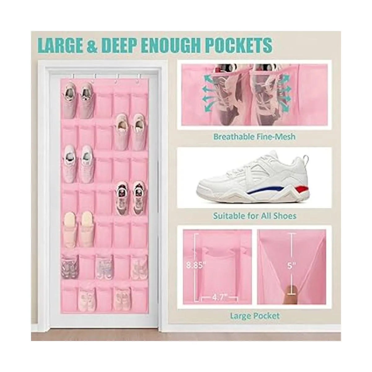 35 bolsillos y alta capacidad: el organizador de zapatos rosa más nuevo sobre la puerta cuenta con 35 bolsillos grandes, 11 más que otros organizadores de almacenamiento detrás de la puerta que sostiene 18 pares de zapatos al menos e incluso todos los zapatos de tu familia, no solo es un organizador de zapatos colgante para almacenar zapatos, como zapatos de niños, tenis de mujer, tacones, pantuflas, sino un organizador de bebé para guardar todas las cosas, juguetes, muñeca de barbie, ropa de bebé, pañales, ropa de bebé, pañales, botellas de agua. El organizador de zapatos mantiene todo bien organizado y se mantiene en forma.