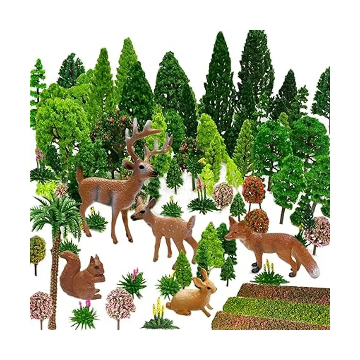 65 unidades. Tamaño de los árboles: 1.66.3 in, 5 figuras de animales. Tamaño: 2.0 3.5 in de longitud