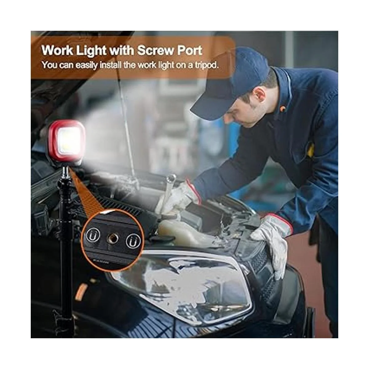Luz de trabajo brillante de 1000 lúmenes: la luz de trabajo brillante con 42 LED, 4 modos de iluminación: alto brillo, brillo medio, parpadeo rápido, parpadeo lento. Esta luz de trabajo COB se ilumina hasta 6 horas con bajo brillo y 3.5 horas con alto brillo después de una carga completa. Linterna de trabajo ideal para acampar al aire libre, reparación de coches o lámpara de seguridad.