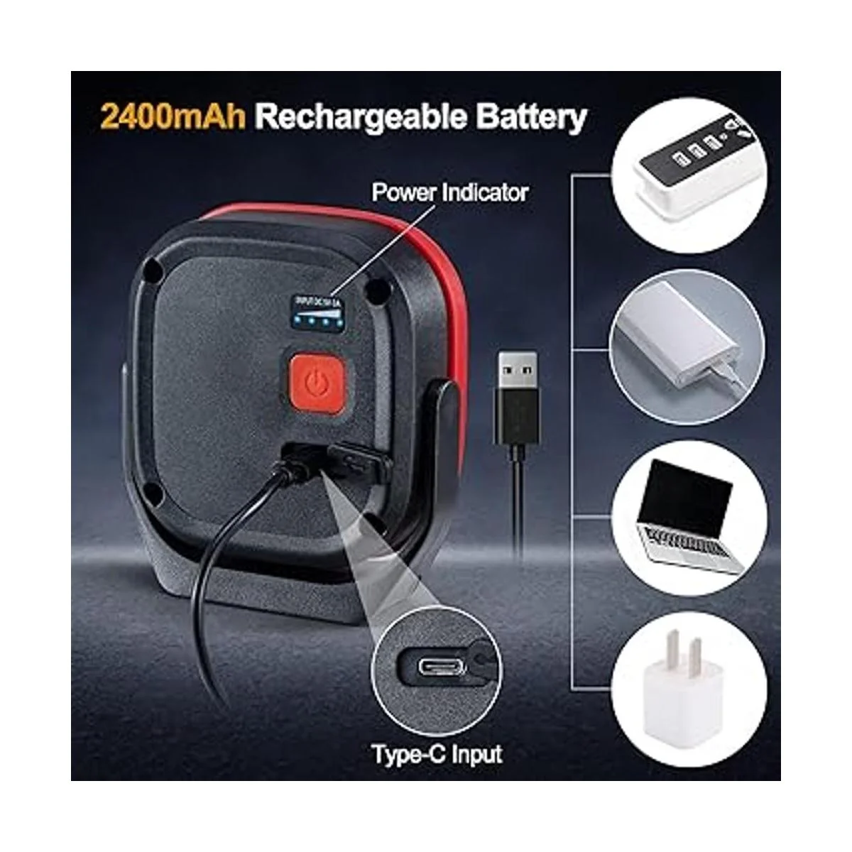 Luz de trabajo recargable: esta luz de trabajo recargable ORHOMELIFE de 2400 mAh es duradera, y se carga por puerto tipo C cable USB incluido. Nuestras luces de trabajo se cargan más rápido y se pueden cargar completamente en 2,5 horas.