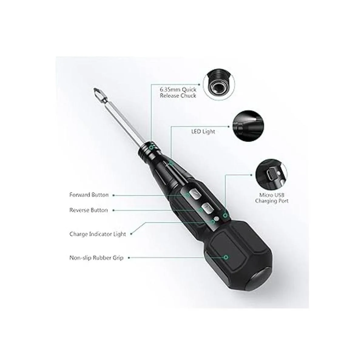 Carga USB y luz LED: este destornillador eléctrico soporta carga USB para mayor comodidad. Puede funcionar continuamente durante 40 minutos después de 1 hora de carga. La luz LED de encendido automático puede iluminar la zona oscura en la esquina.