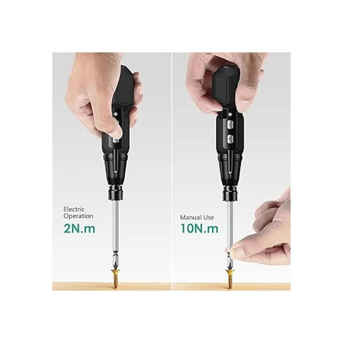 Destornillador eléctrico mejorado: este destornillador eléctrico tiene modos eléctricos y manuales. El par máximo de torsión puede alcanzar 2 NM en trabajos eléctricos, solo es adecuado para pequeños tornillos de teléfono móvil/marco de gafas/portátil. El destornillador eléctrico de 280 velocidades puede atornillar tornillos rápida y fácilmente, mejorando tu eficiencia de trabajo. No apto para electrodomésticos grandes
