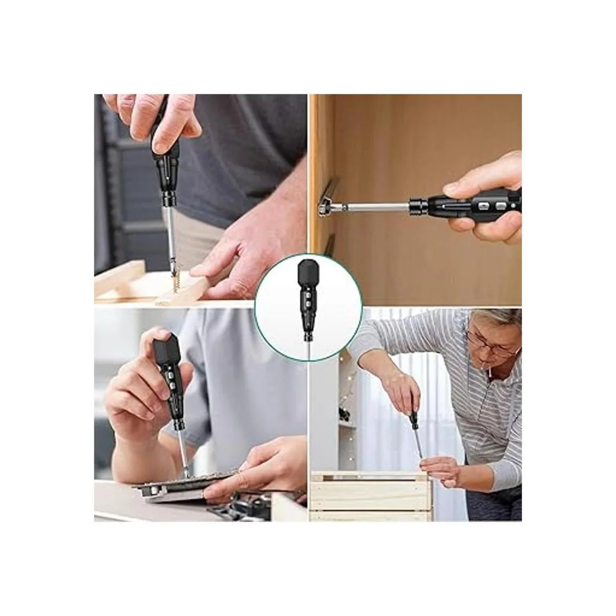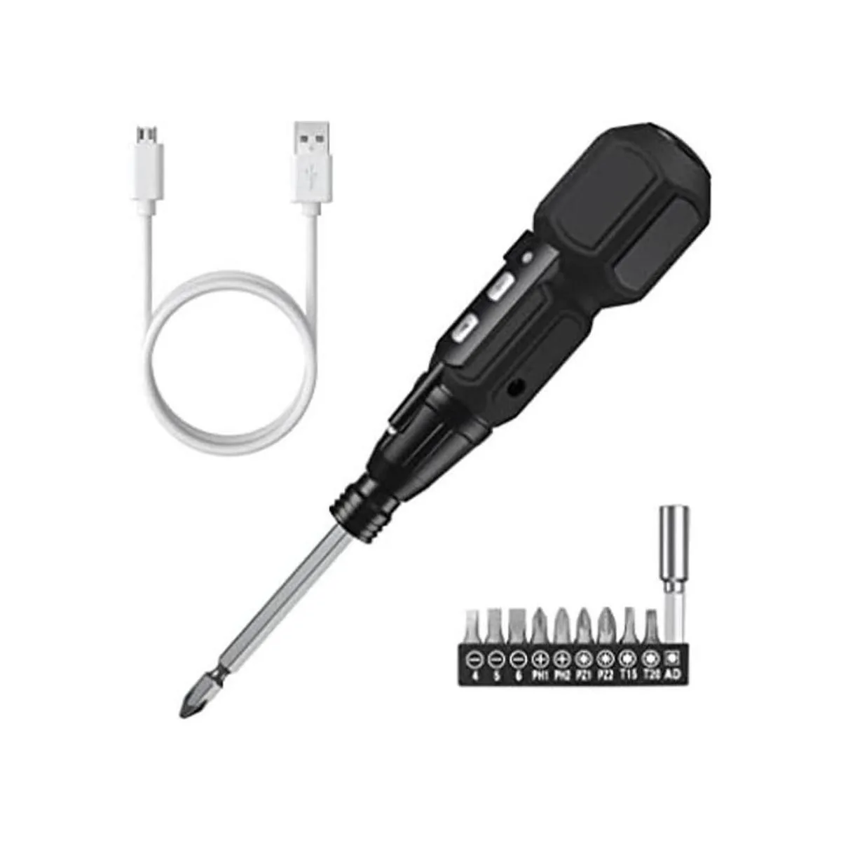 ORIA Destornillador eléctrico inalámbrico, juego de destornilladores recargables 9 en 1 con 8 puntas de destornillador, kits de herramientas de reparación de energía inalámbrica con punta de cabeza de 0.250 in, luz LED, cable de carga Android