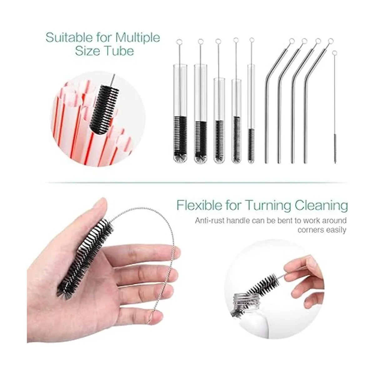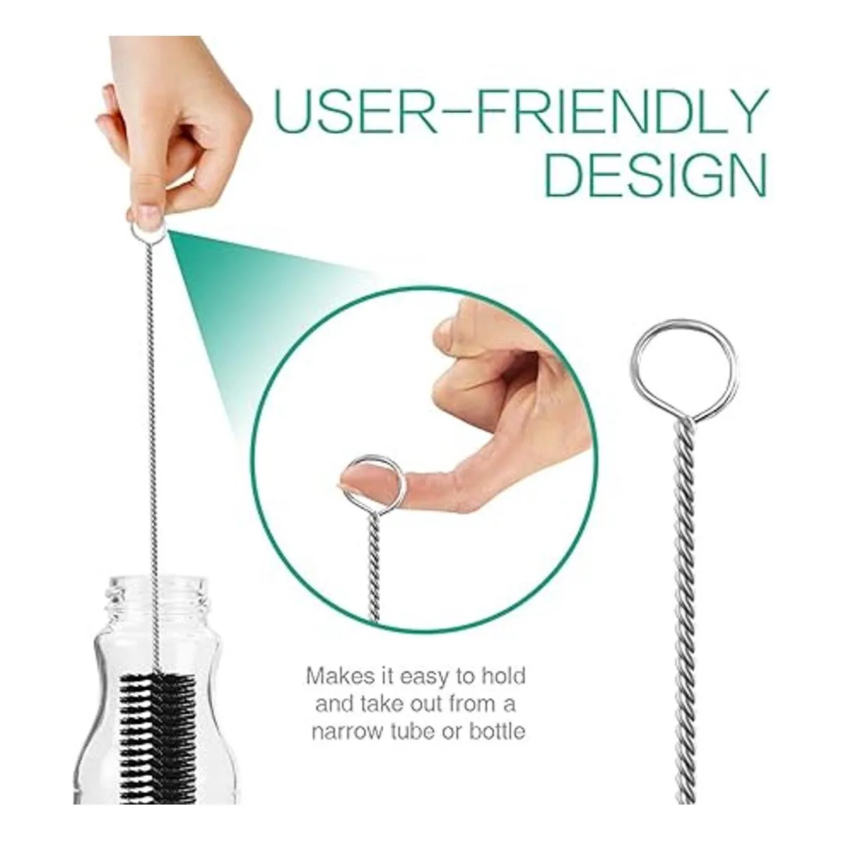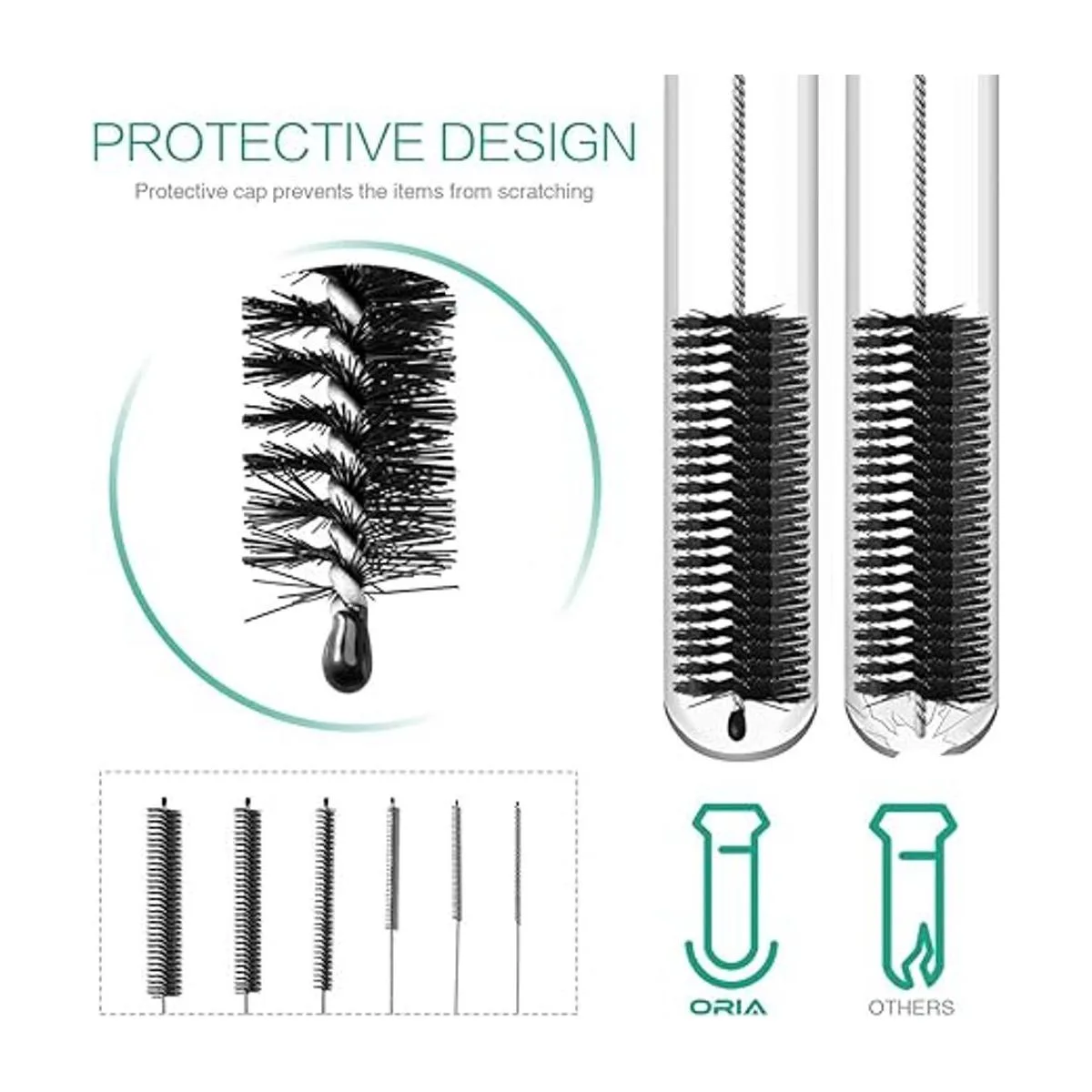 ORIA Juego de cepillos de limpieza, limpiador de cepillos de botella de 9.8 pulgadas, cepillo de limpieza de botellas de agua, juego de limpieza de alambre de cocina para limpieza de laboratorio, pajita, botella de vino, taza, tuberías, teclado, juego de 10