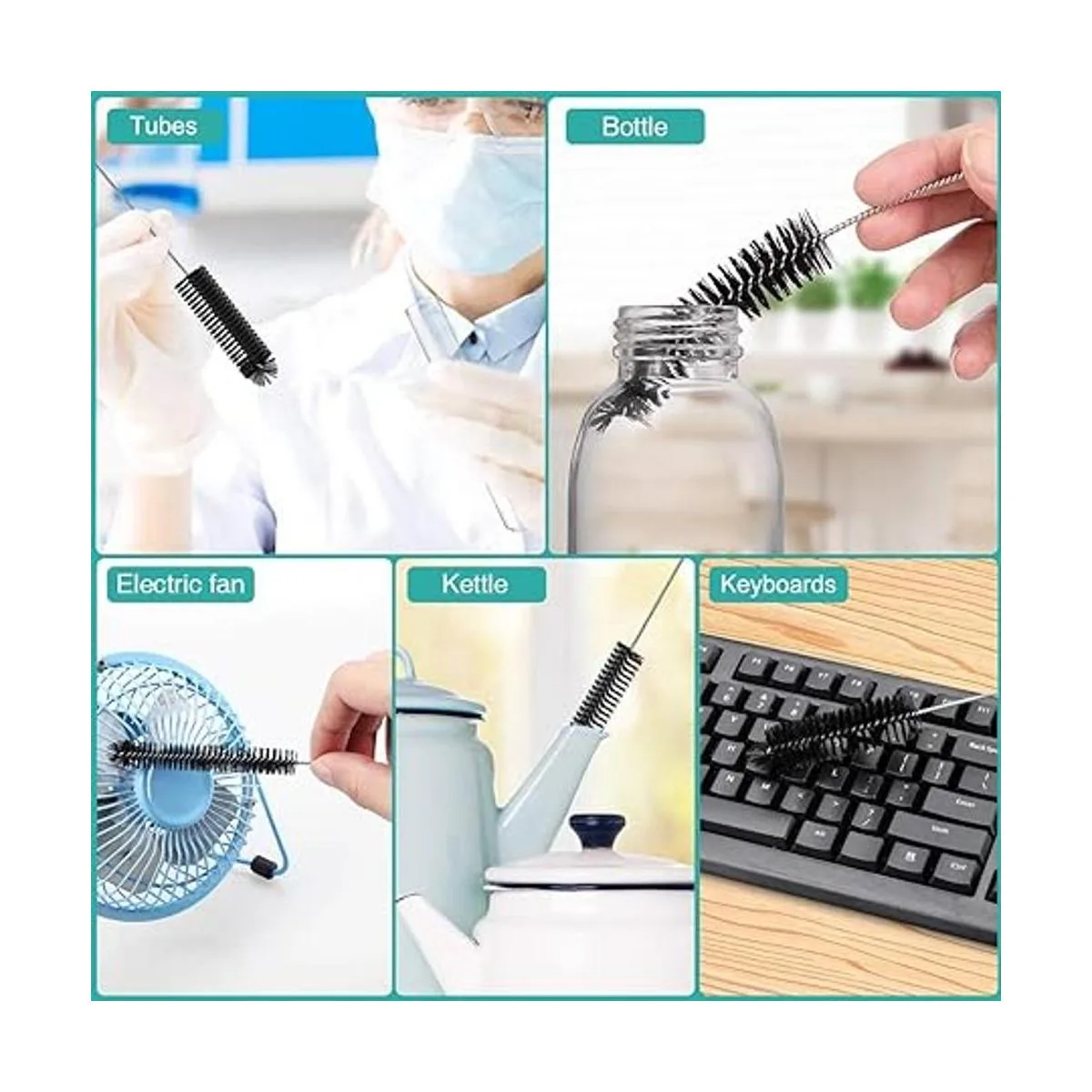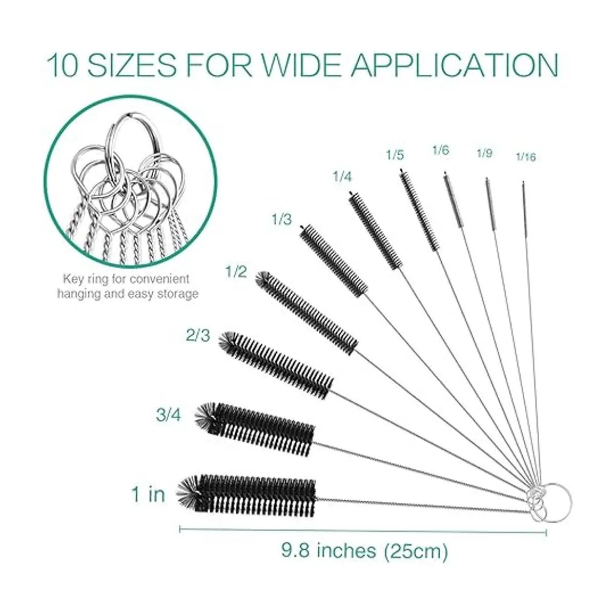 Variedad de tamaños : 1 juego de 10 cepillos de tubo de nailon de 25.0 in de largo, lo que permite la limpieza de espacios de difícil acceso. Los tamaños son de 0.079 in, 0.118 in, 0.157 in, 0.197 in, 0.236 in, 0.315 in, 0.472 in, 0.630 in, 0.787 in, 0.945 in respectivamente. Los cepillos de 0.472 in, 0.630 in, 0.787 in y 0.945 in tienen cepillos en la parte superior, que permiten limpiar el interior y la parte inferior de las tazas o tubos.