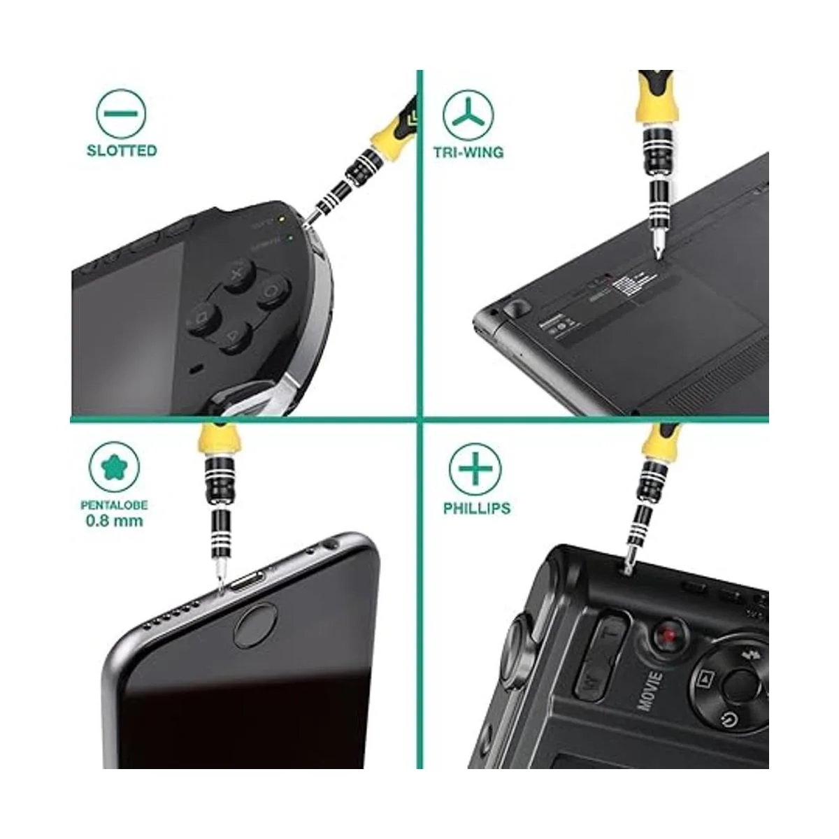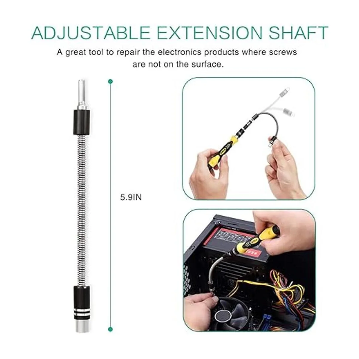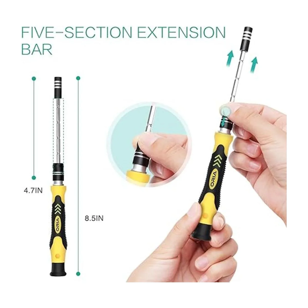 ORIA Juego de destornilladores de precisión, 60 en 1 con juego de destornilladores de 56 puntas, kit de destornillador magnético con eje flexible, barra de extensión para teléfono celular, teléfono inteligente, consola de juegos, tableta, PC, amarillo.