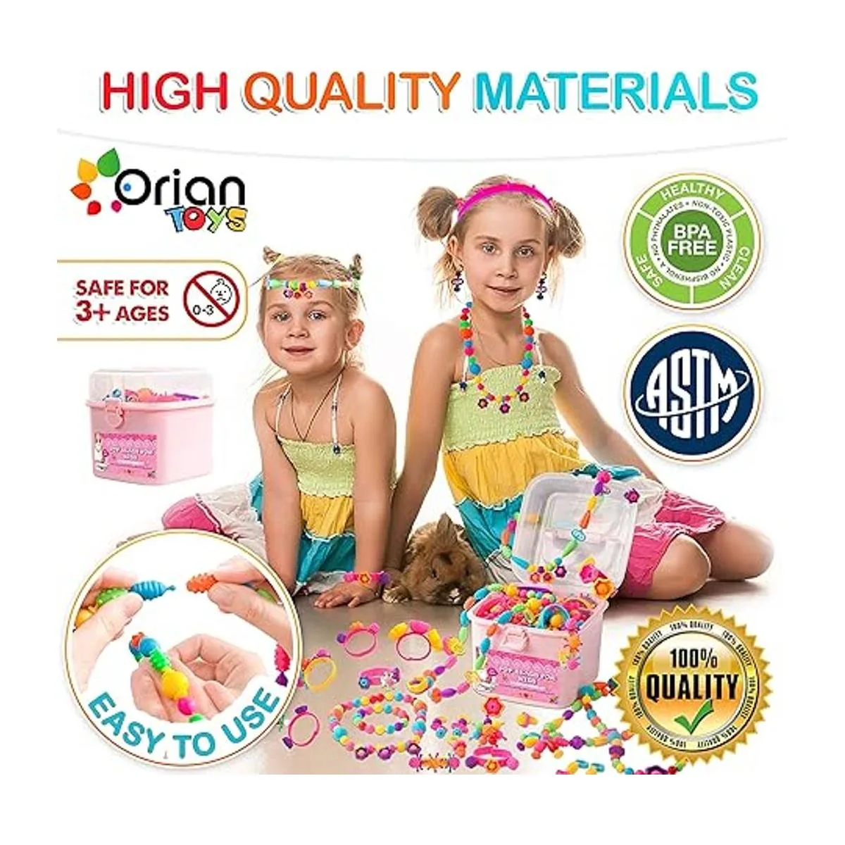 Plástico de alta calidad, sin BPA y certificado ASTM: aquí en Orian Toys, valoramos la seguridad infantil tanto como tú, por lo que todos nuestros kits de cuentas a presión están fabricados con plástico sin bisfenol A que es seguro para manualidades para niños de 3, 4, 5, 6, 7, 8 años en adelante.