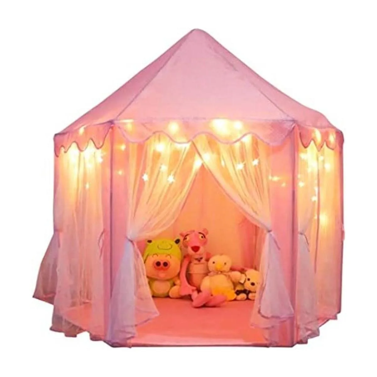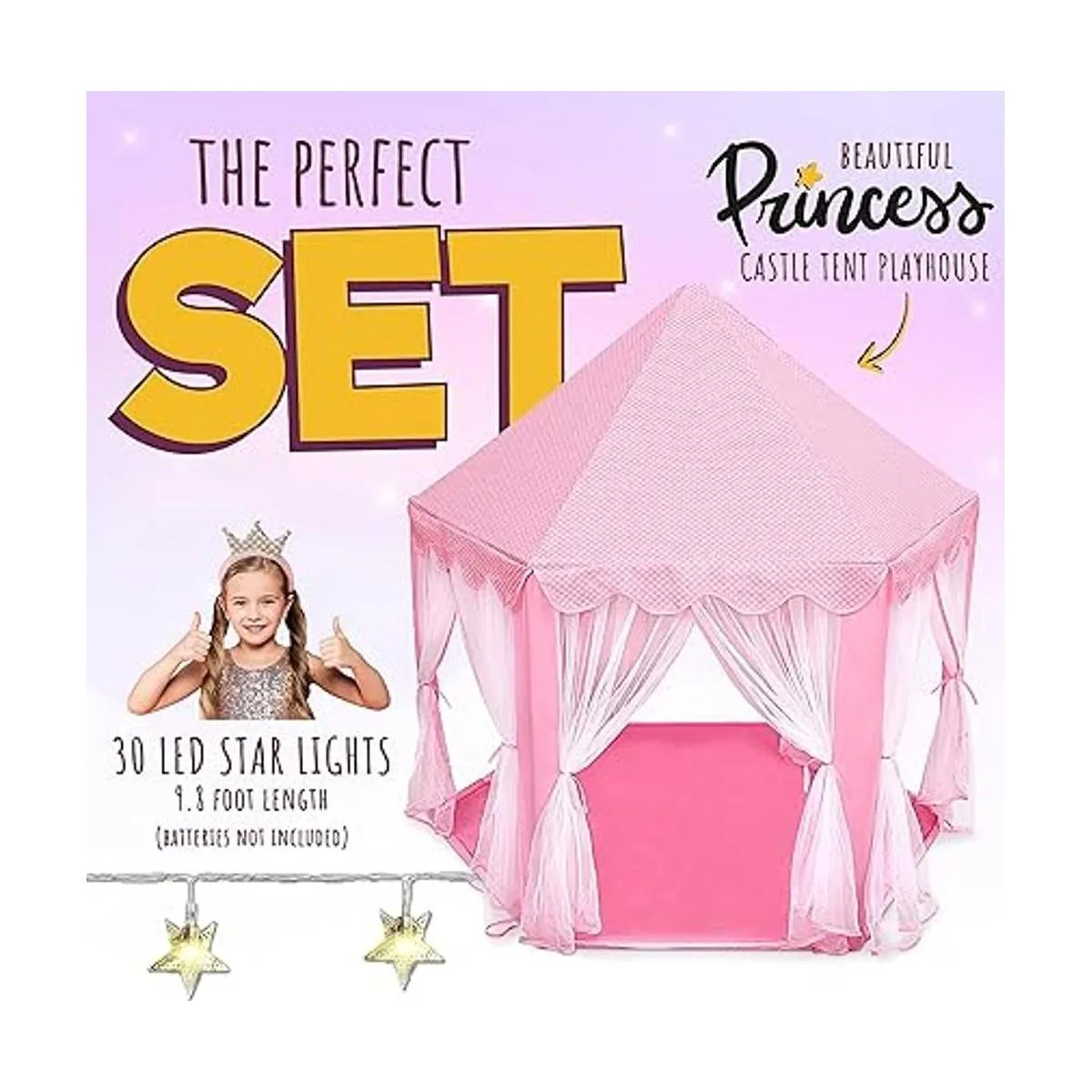 Luces LED de estrella adicionales: cada tienda de campaña de princesa incluye una cadena de 14.8 ft certificada por FCC de hermosas luces LED de estrella 3 pilas AA no incluidas. Estas estrellas brillantes y brillantes ayudan a crear aún más un ambiente saludable y de ensueño y son la tienda de campaña perfecta para niñas