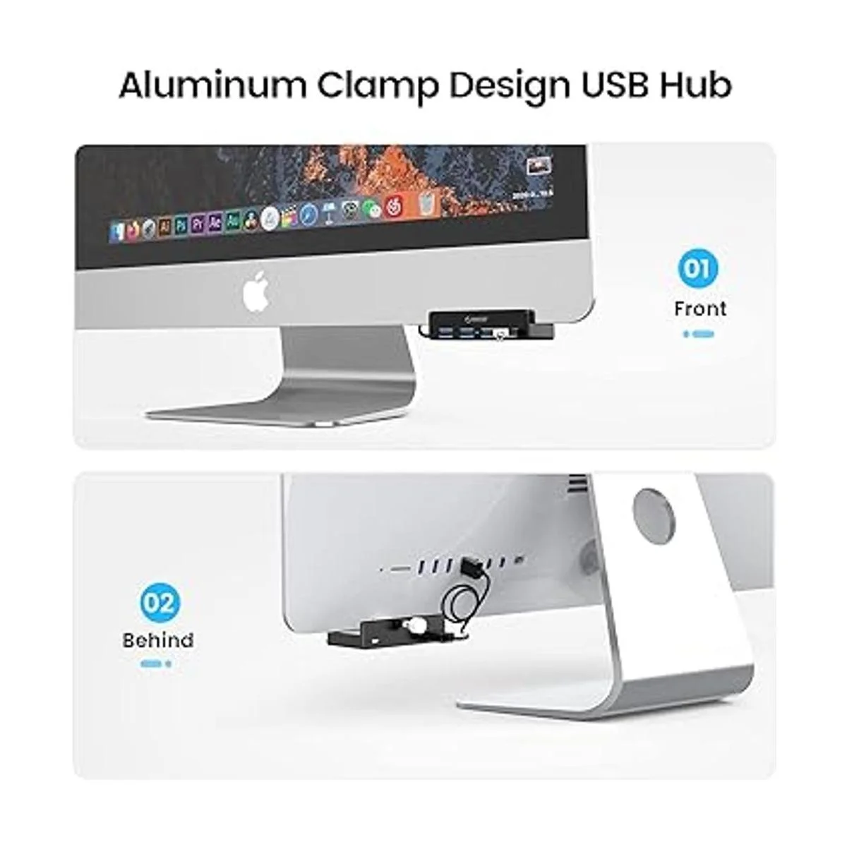 Hub USB de abrazadera: hub USB ORICO diseñado con tornillo ajustable que te permite montar el borde de la pantalla del monitor o el grosor del borde del escritorio de 0.39 a 1.26 pulgadas 10 a 1.260 in, sin ocupar mucho espacio y mantener tu escritorio ordenado. El cubo de fijación es fácil de instalar y la cubierta de goma resistente en el tornillo puede proteger el acabado del monitor.