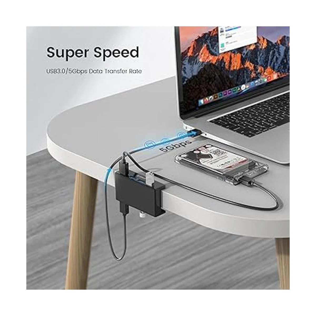 ORICO Adaptador USB 3.0, divisor USB de aluminio de 4 puertos con puerto de fuente de alimentación adicional y cable de datos USB de 4.92 pies, expansor USB ultraportátil para MacBook AirLaptopPC negro