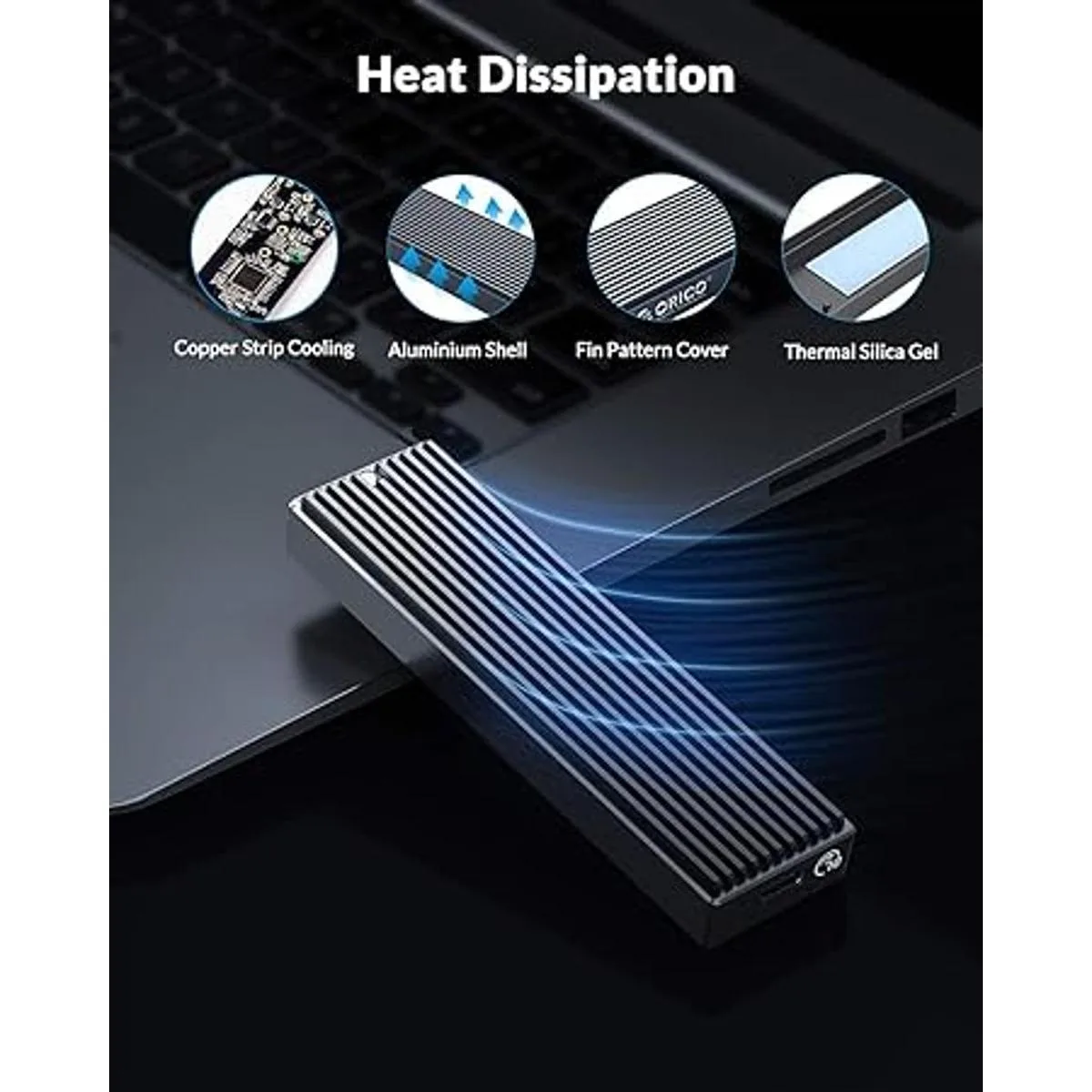Diseñado para transportar: esta funda externa ORICO está hecha de aluminio superior e inferior de plástico, lo que garantiza portabilidad y buen efecto de disipación de calor. El tamaño portátil de 4.25 x 1.16 x 0.53 pulgadas es muy conveniente para llevar. Puedes poner tu disco duro M.2 NVMe en esta carcasa y equiparlo con sistemas Windows o macOS, como unidad externa.