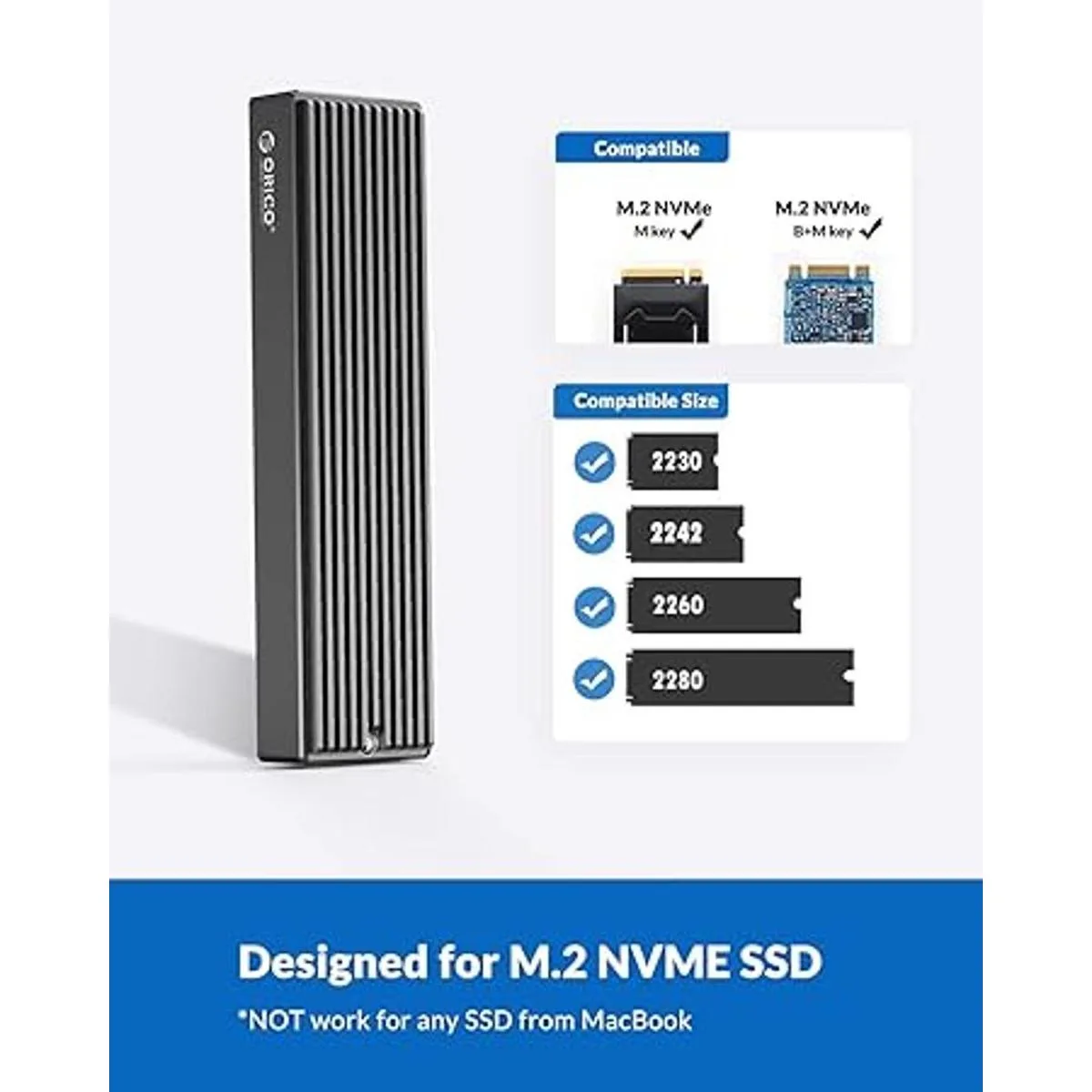 Solo apto para SSD PCIe NVMe M.2: ORICO M.2 a USB solo para SSD NVMe MKey M.2 basado en PCIe de hasta 2 TB, aplicable a tamaños 2230 / 2242 / 2260 / 2280 SSD, la funda ORICO PCIe NVMe no es compatible con SSD M.2 SATA basados, M.2, M.2, M.2 2 PCIe AH. SSD CI y cualquier SSD de Mac.