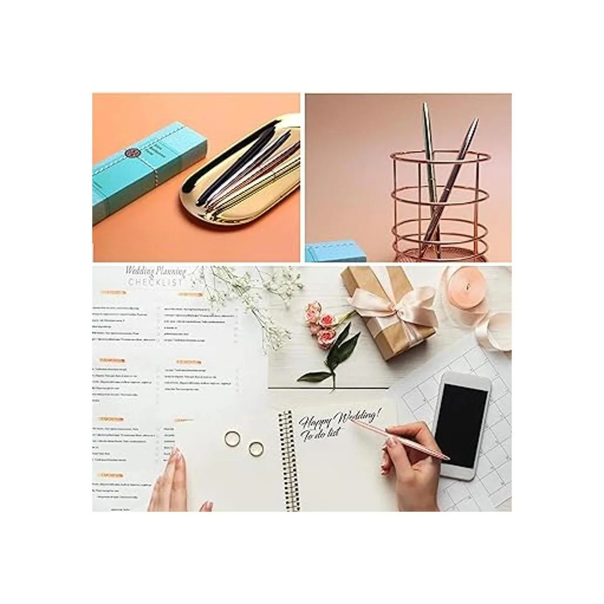 Diseño delgado y elegante: su aspecto minimalista es reconfortante a los ojos y su diseño ilumina tu estado de ánimo y proporciona un toque estético a tu oficina en casa. Si estás buscando accesorios de escritorio, utiliza estos elegantes bolígrafos para tu decoración de oro rosa, decoración dorada, decoración plateada, acabado de metal o decoración negra chic, tienes tu elección