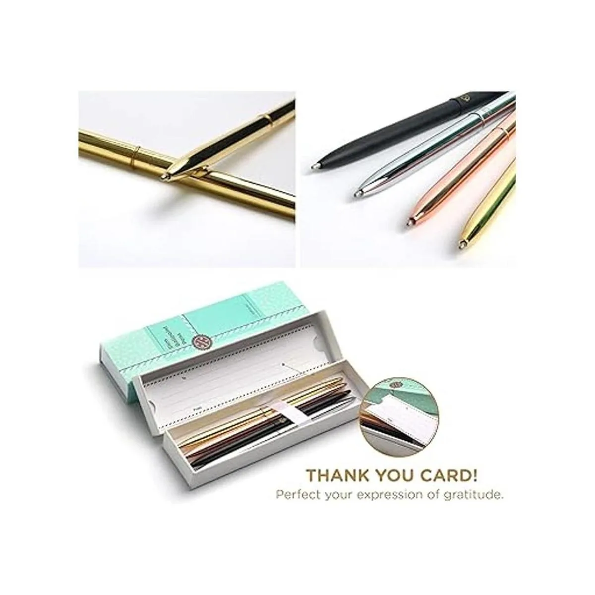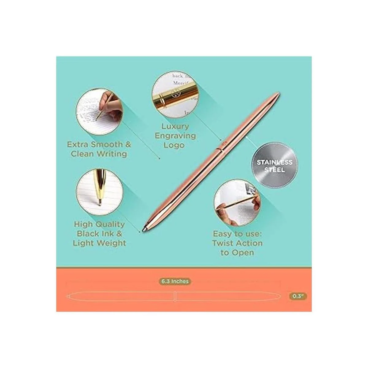 El paquete contiene: 4 bolígrafos. Tamaño del bolígrafo: 6.2 x 0.2 in, tinta negra, punta de bola de 0.020 in. Viene en 4 colores de bolígrafos: oro, oro rosa, plata, negro mate. Con una carcasa metálica descansa cómodamente en la mano. Es ligero y fácil de llevar en tu bolso, traje, bolsillo, estuche, bolsa. La línea de tinta fluye audaz y uniformemente.