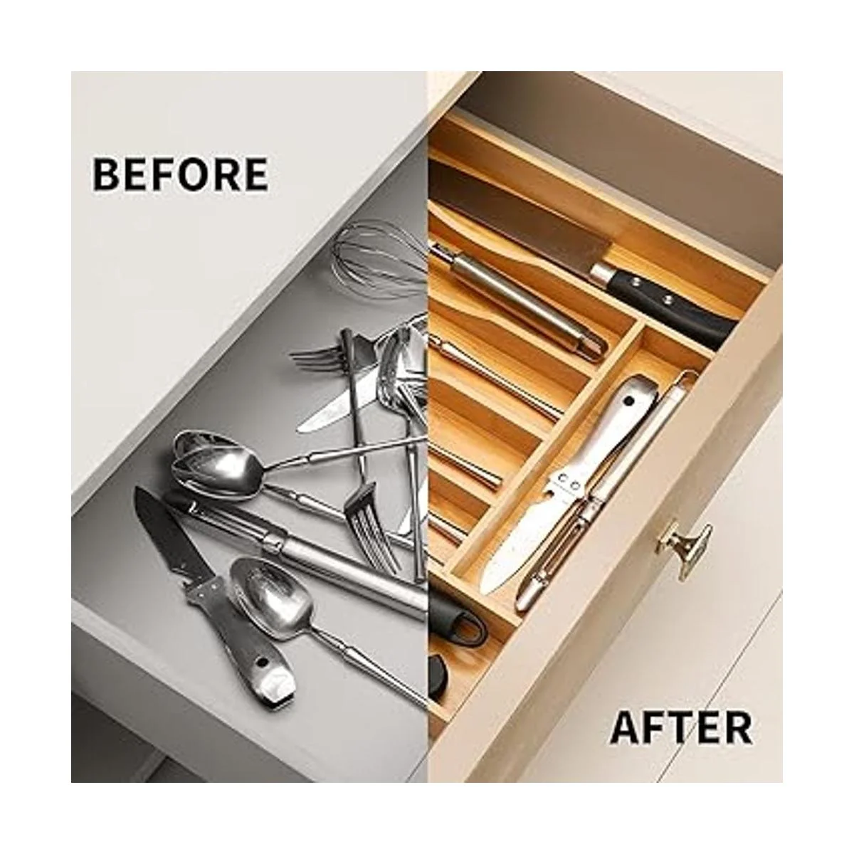Fácil de limpiar y mantener: lava tu organizador de cajones de cocina de bambú con agua tibia, luego limpia con un paño húmedo y seca al aire. Cumpliendo con los principios de protección del medio ambiente y desarrollo sostenible, ORIDOM se compromete a desarrollar y producir productos de bambú para añadir belleza, simplicidad y comodidad a tu hogar. Tu satisfacción es nuestra prioridad número 1: el servicio al cliente 24/7 respalda. Si tienes alguna pregunta, no dudes en ponerte en contacto con nosotros.