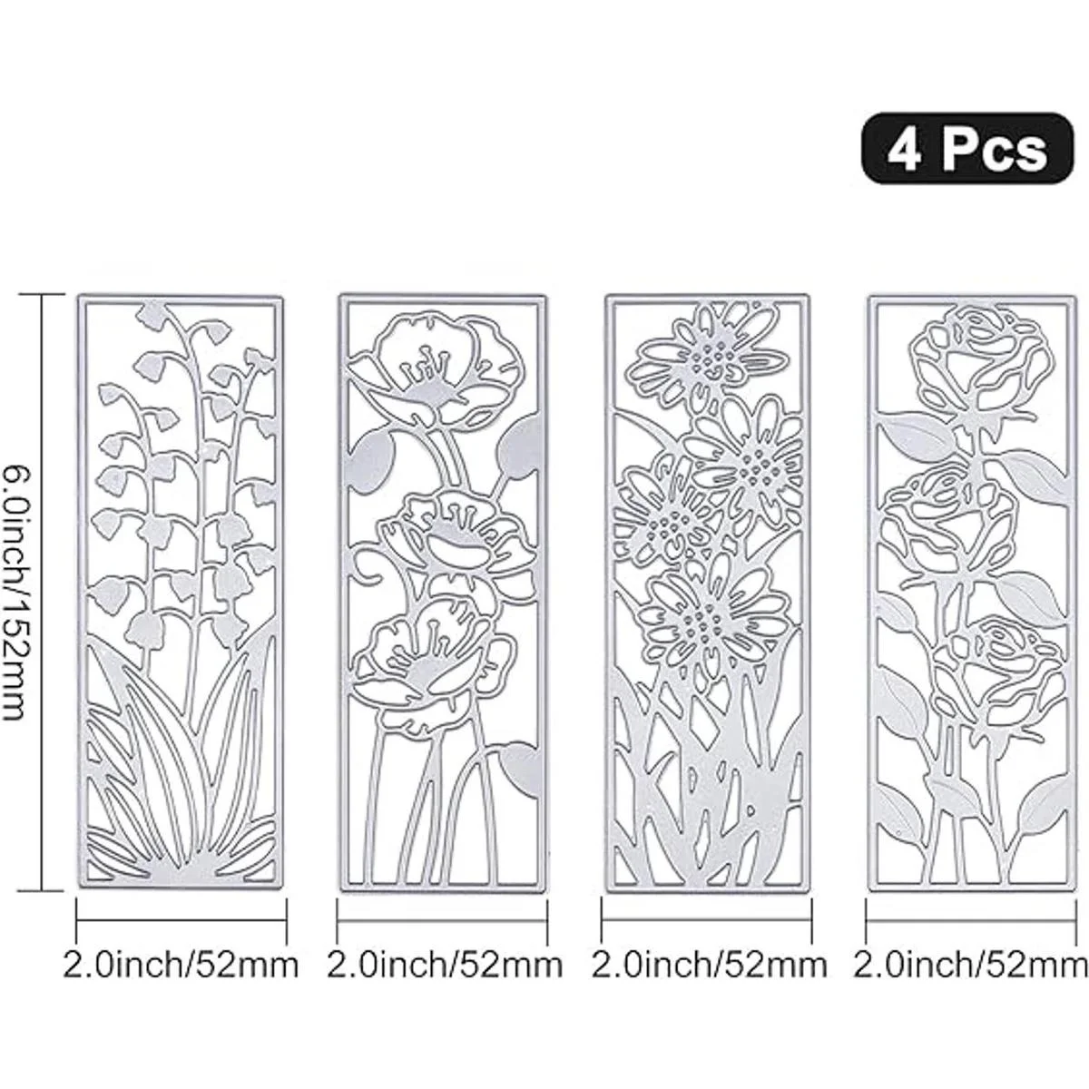 ORIGACH 4 troqueles de corte de marco de flores de metal, plantillas en relieve, molde de plantilla para marcapáginas de bricolaje, decoración de tarjetas de álbumes de recortes, decoración de flores 3D