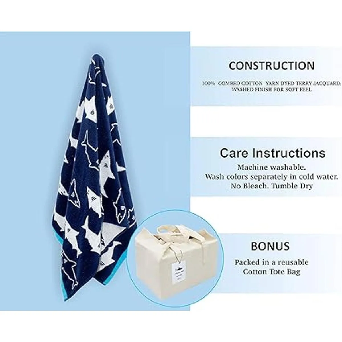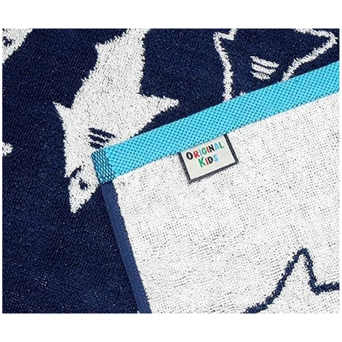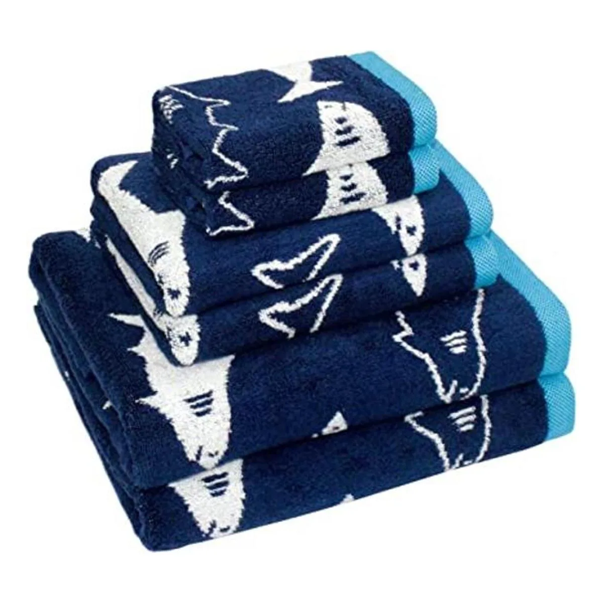 ORIGINAL KIDS Juego de 6 toallas Baño Shark Attack 2 toallas de baño, 2 toallas de mano, 2 toallas en bolsa adicional, 100 algodón jacquard suave, absorbente, de secado rápido, toalla de playa para piscina, color azul marino