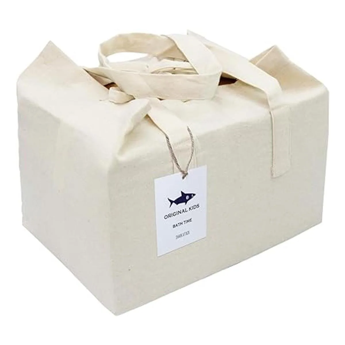 El juego contiene: dos 2 toallas de baño originales para niños: dos 2 toallas de mano a juego, dos 2 paños a juego y una 1 bolsa de lona reutilizable