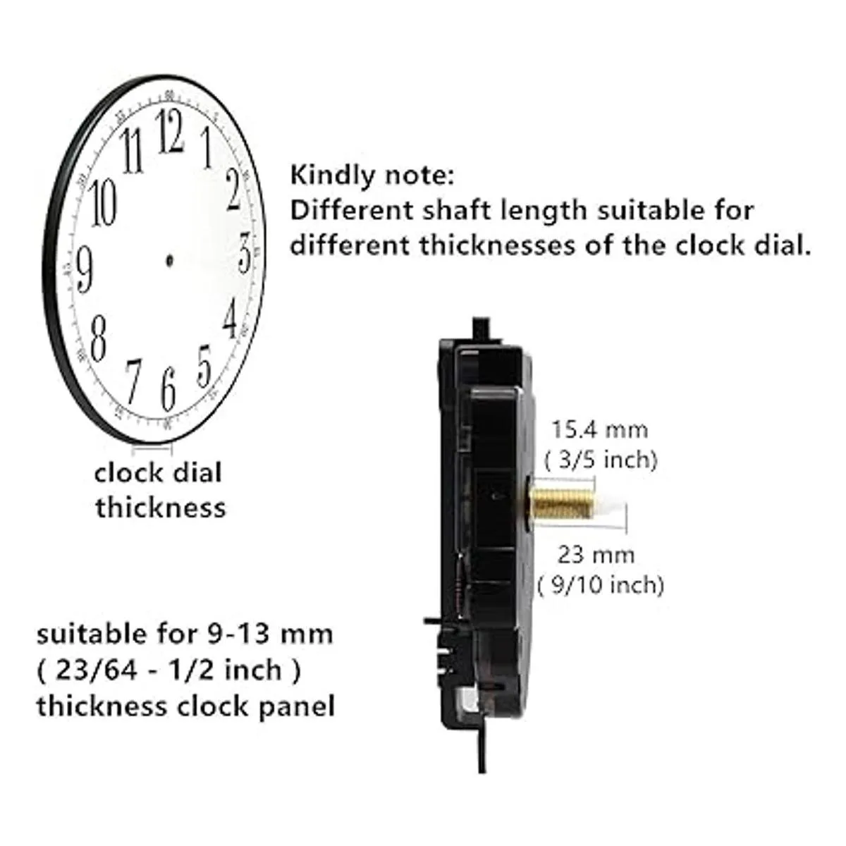Tipo de péndulo. paso movimiento, adecuado para 9 13 mm 9/25 1/2 inches Panel de reloj de grosor; Longitud total del eje: 23 mm 9/10 inches, longitud de la rosca: 15,4 mm 3/4 de 5Inches.