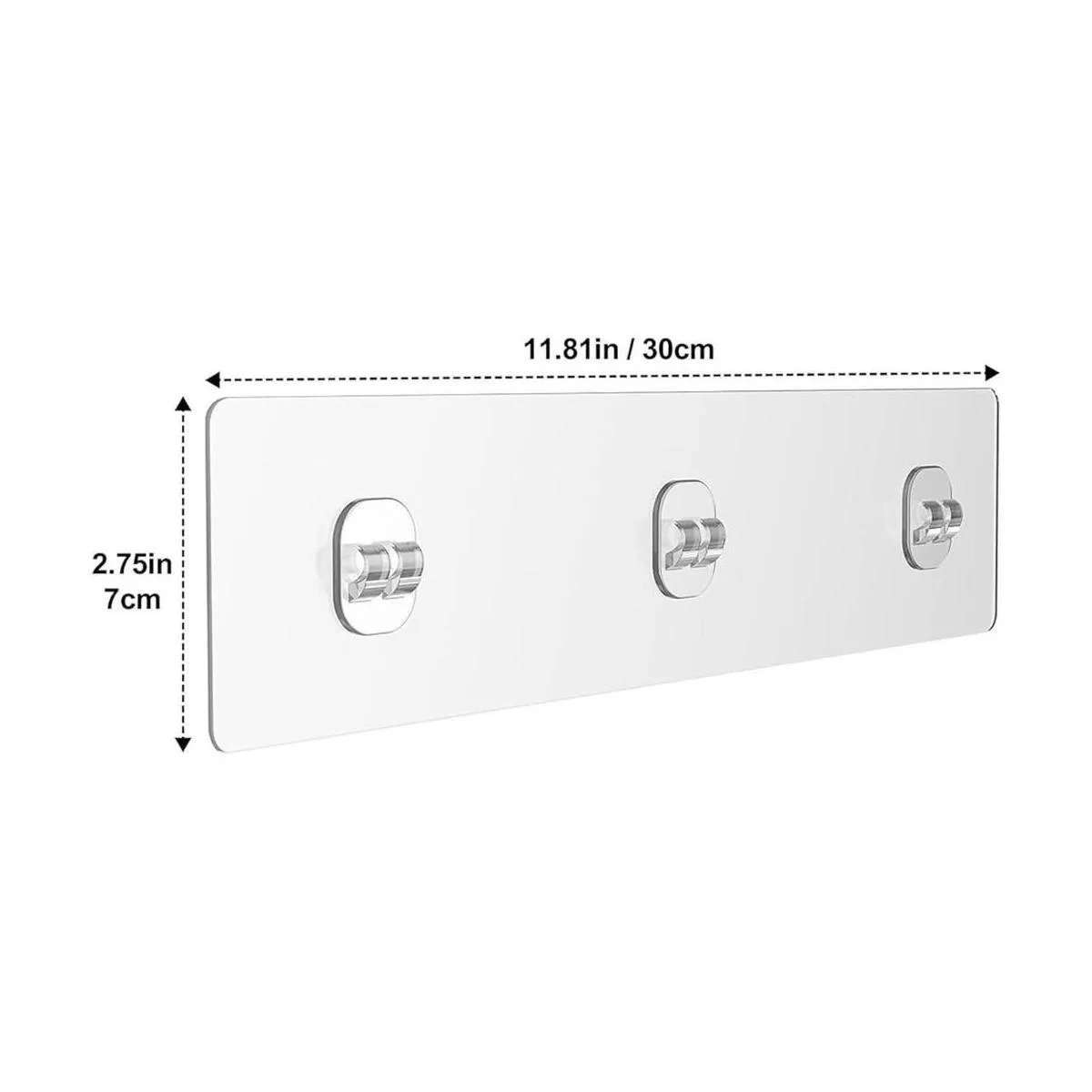 Adhesivo transparente único sin rastro con ganchos que ofrecen una mayor capacidad de carga. Sin taladrar ni dañar la pared.