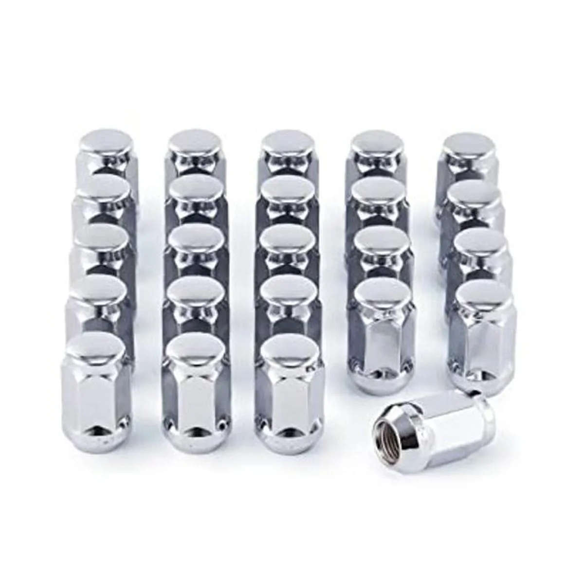 Tuercas hexagonales cromadas 24 piezas para paso de rosca de 1/220 y ruedas de posventa de 5 o 6 lengetas, encontrar en Jeep JK Wrangler 20072018, Jeep Grand Cherokee 19932017, Jeep Liberty 20022012, Ford Ranger 19832012, Ford 19872 Mustang 19 912018 Explorer, 19872004 Dodge Dakota, 19982003 Dodge Durango.