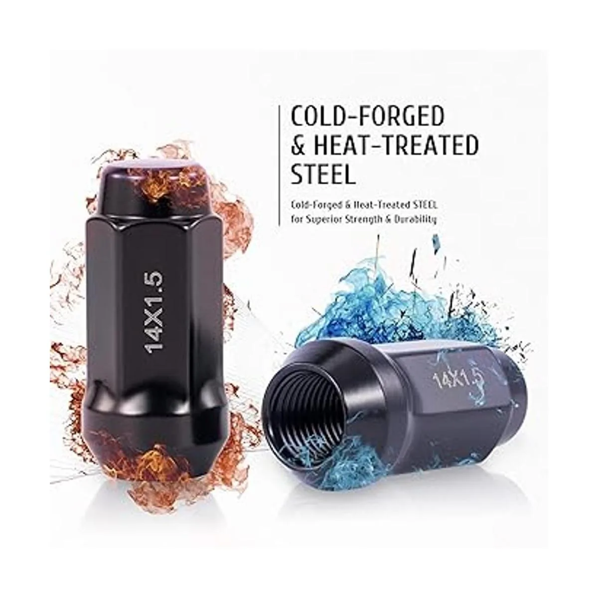Orion Motor Tech, 24 unidades, tuercas de ruedas de M14 x 1.5, color negro. Tuerca alta XL con extremo cerrado
