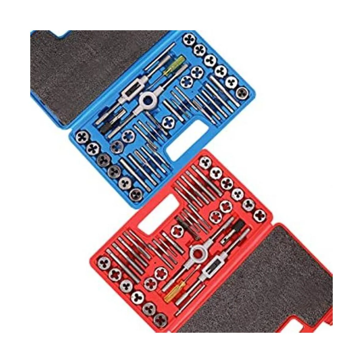 Orion Motor Tech Juego de tarrajas y machuelos de estándar americano SAE y milimétricos, 80 piezas. Tipos de rosca NC, NF, NPT. Juego de tarrajas y machuelos milimétricos y estándar americano SAE para realizar roscados externos e internos.