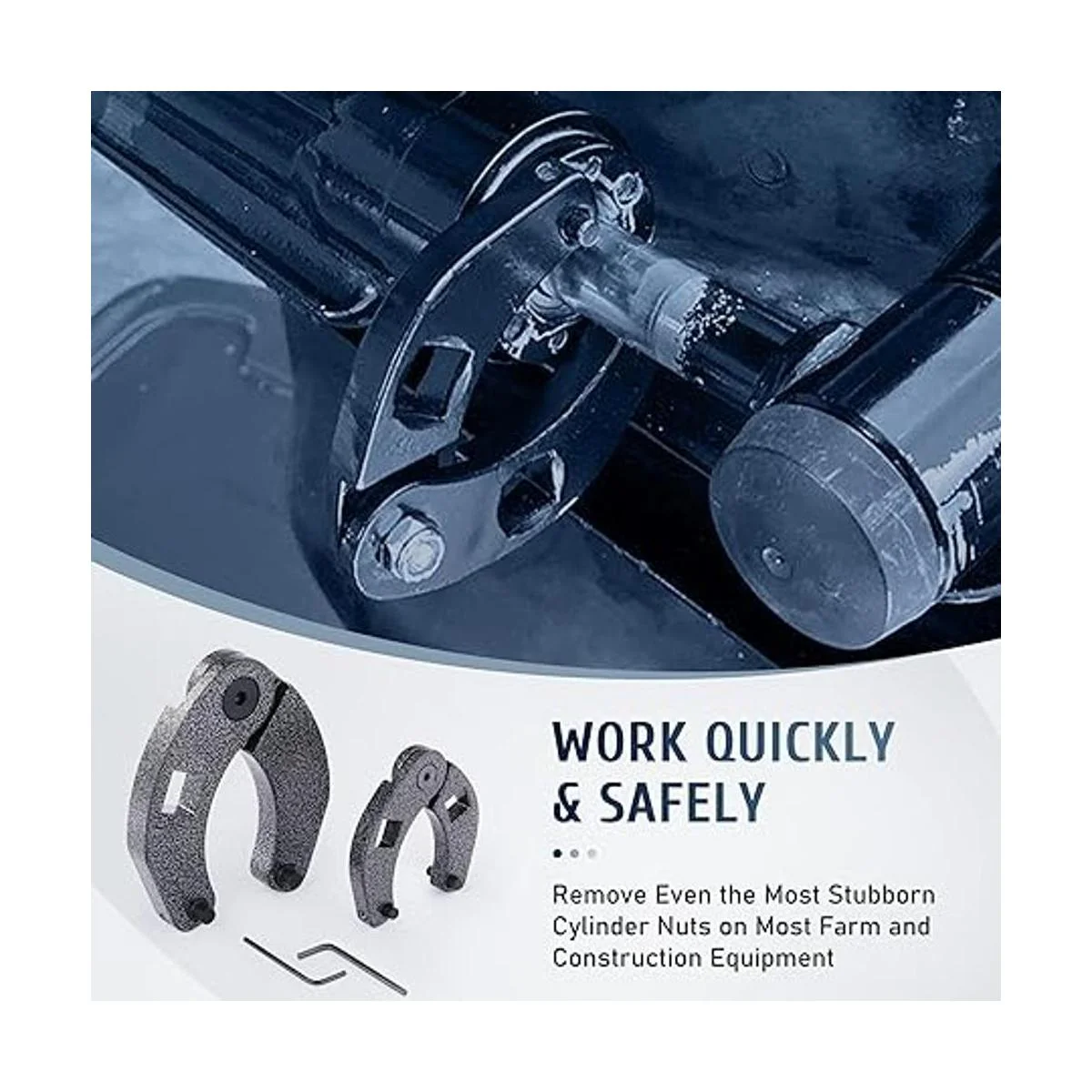 Juego de llaves de 4 piezas: el kit de herramientas de cilindro hidráulico universal de Orion Motor Tech incluye una llave de tuerca de prensaestopas 1266, una llave de tuerca de prensaestopas 7463 y dos llaves hexagonales para alcanzar y manipular específicamente las tuercas de prensaestopas en la mayoría de equipos de granja y construcción