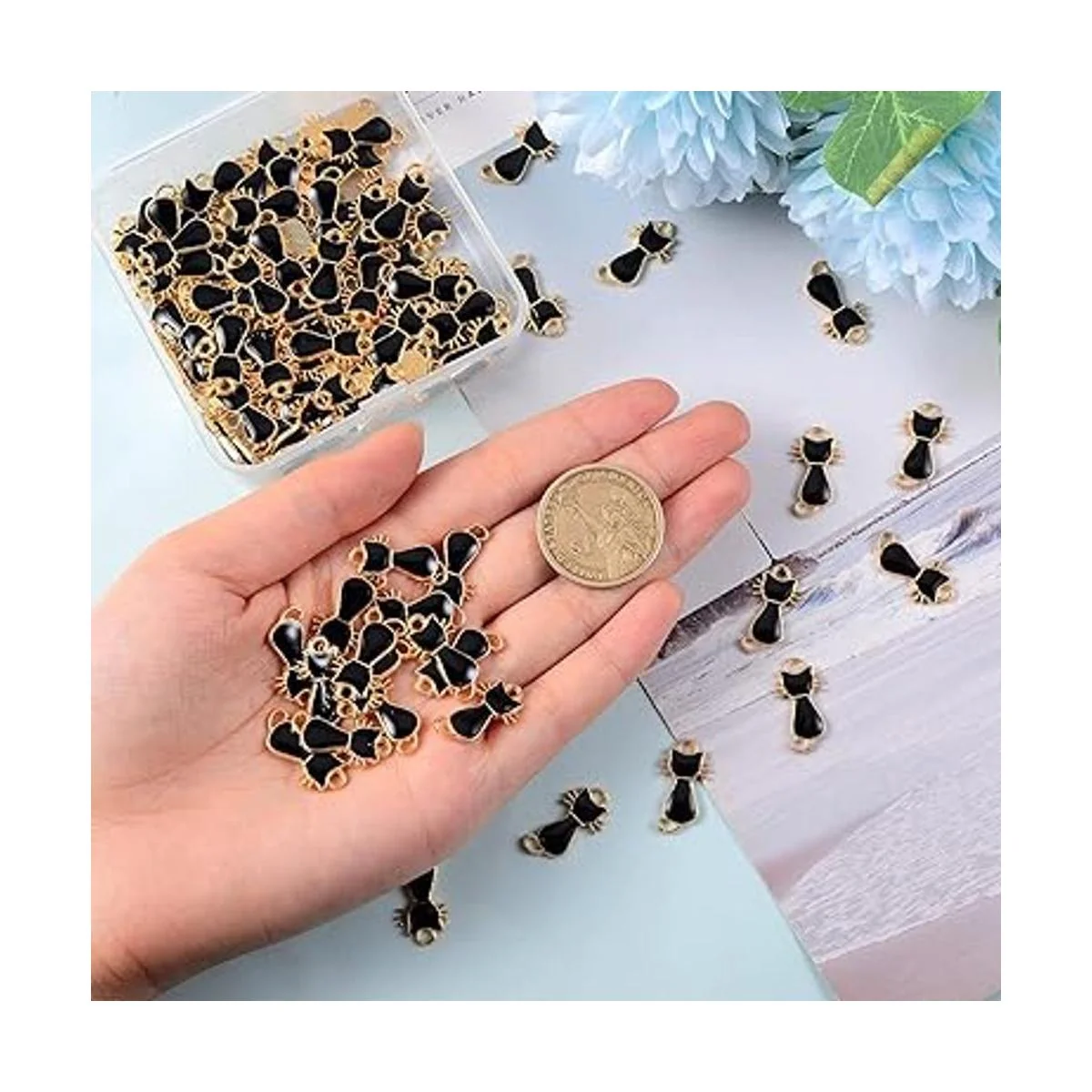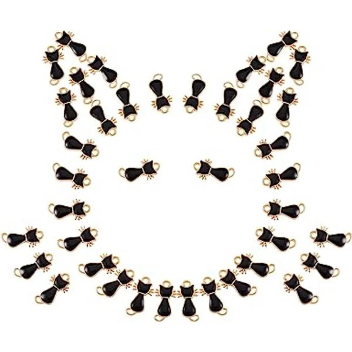 Ornaland 100 dijes de aleación de esmalte para gatos, lindos dijes de animales y gatos negros para hacer joyas, Cobre