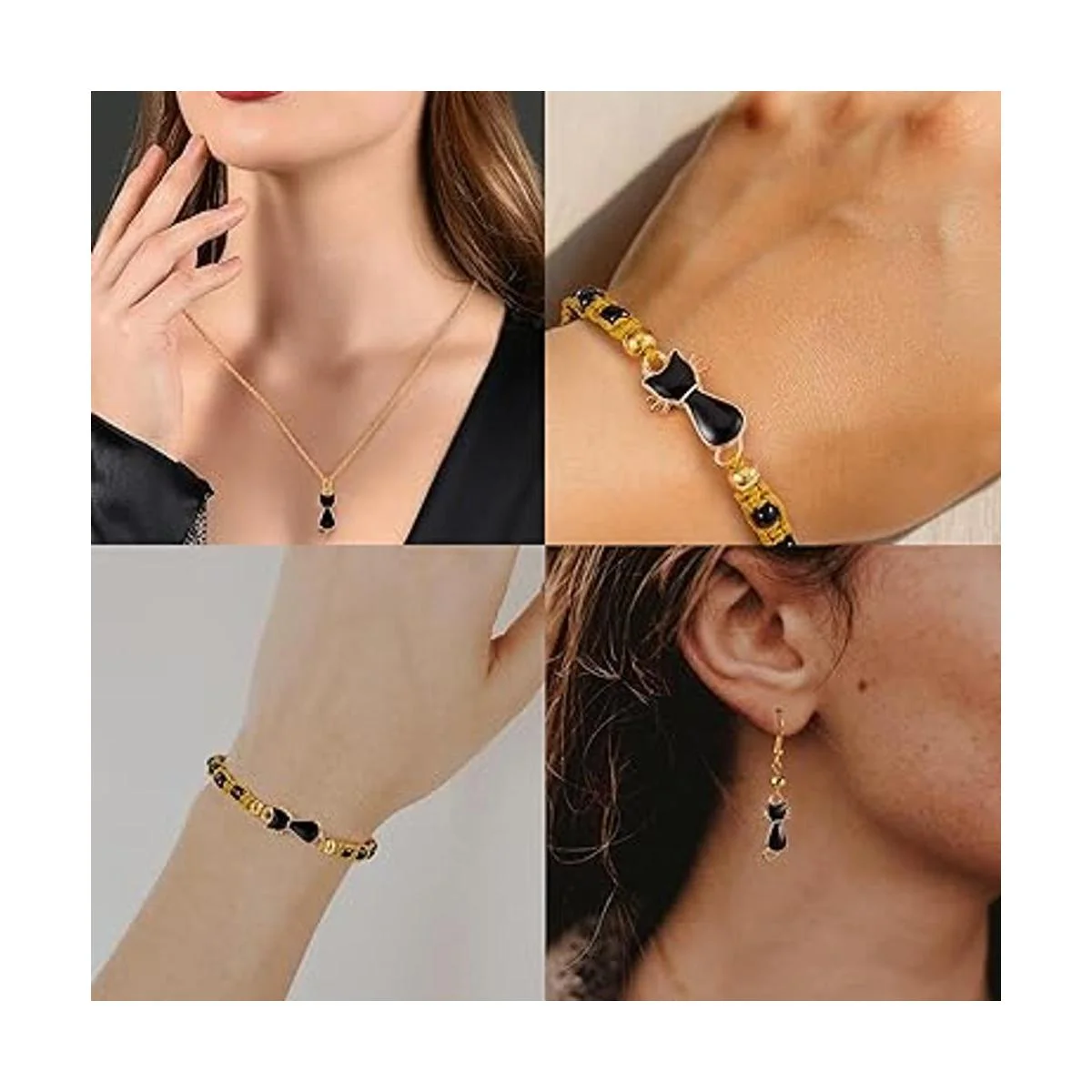 Diseño: esta cadena para gatos utiliza un diseño de doble cara, cada colgante tiene un pequeño agujero, fácil de conectar a otros accesorios, gato negro lindo y a la moda