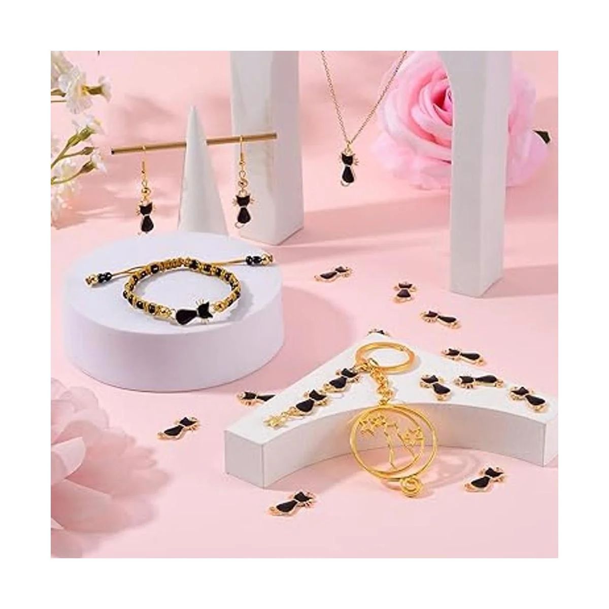 Función de bricolaje: puedes utilizar este colgante de gato negro con otras cuentas o cables de cobre, cadena junta, collar de bricolaje, pulsera, aretes, cadenas de pie, llavero y otras joyas