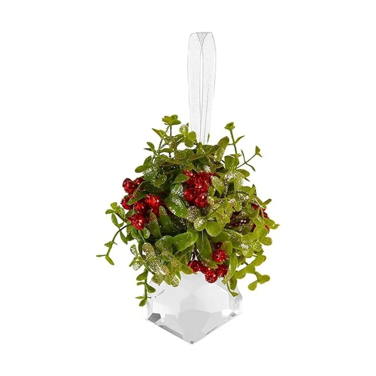 Ornativity El adorno de muérdago para árboles de Navidad es una bola de vegetación y un cristal acrílico.