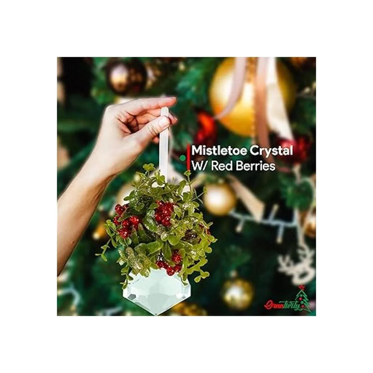 Ornativity Adorno de muérdago de cristal colgante, punta de nebulización de cristal de besos de Navidad con decoración de árbol de bola de bayas