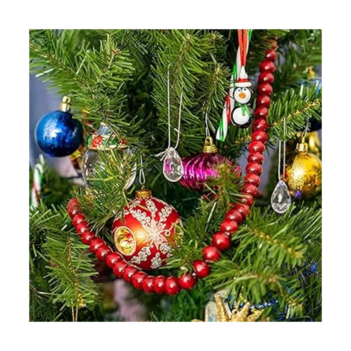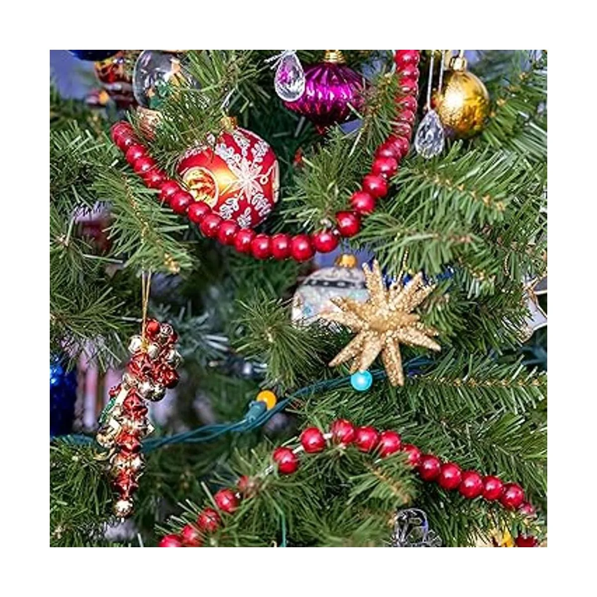 Ornativity Guirnalda de Navidad de madera Guirnalda de cuentas de madera rústica para decoración de árbol de Navidad rojo arándano
