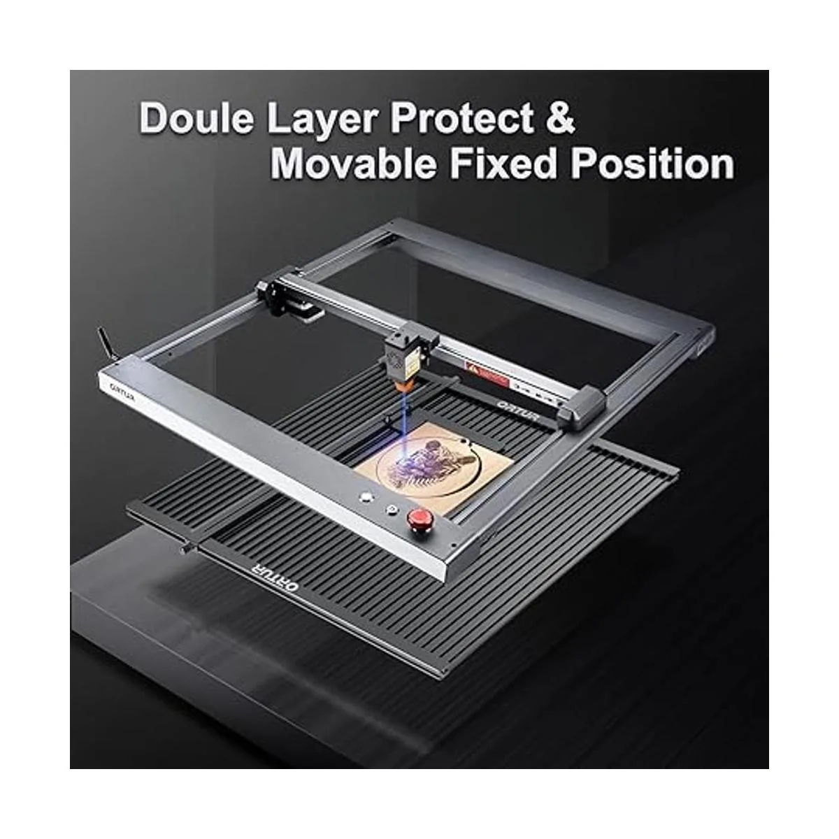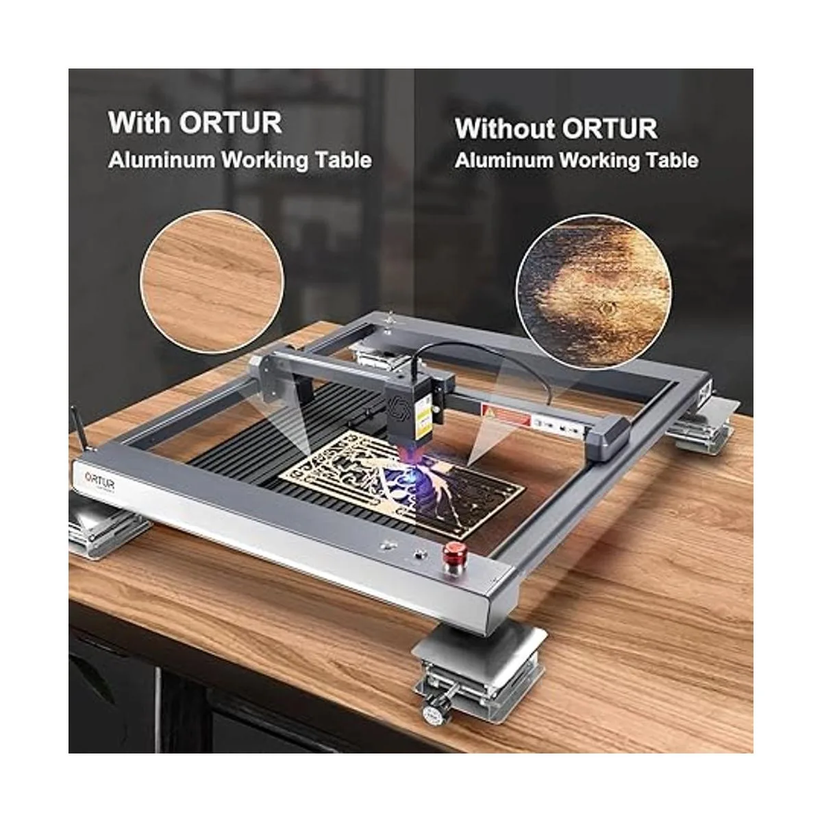 Estructura gruesa totalmente metálica: la plataforma de grabado ORTUR está en estructura totalmente metálica y procesamiento CNC de alta precisión, lo que la hace en alta planitud y estructura fuerte. No se deforma ni se mueve fácilmente. El peso de la plataforma de grabado es de 3.9 lbs, que es un 50 más ligero que la cama láser de panal.