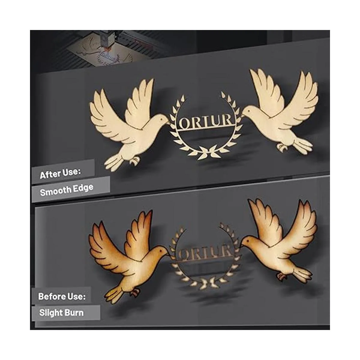 Disipación rápida del calor: el tamaño de la muesca cuadrada se calcula científicamente, lo que puede hacer que el objeto de grabado obtenga una rápida disipación del calor durante el proceso de grabado para garantizar que el borde de corte sea más refinado y evitar la quema del objeto de grabado debido a la temperatura excesiva. El humo de la ranura cuadrada fluirá hacia afuera, y no se volverá amarillo. Por lo tanto, no hay necesidad de ninguna placa trasera.
