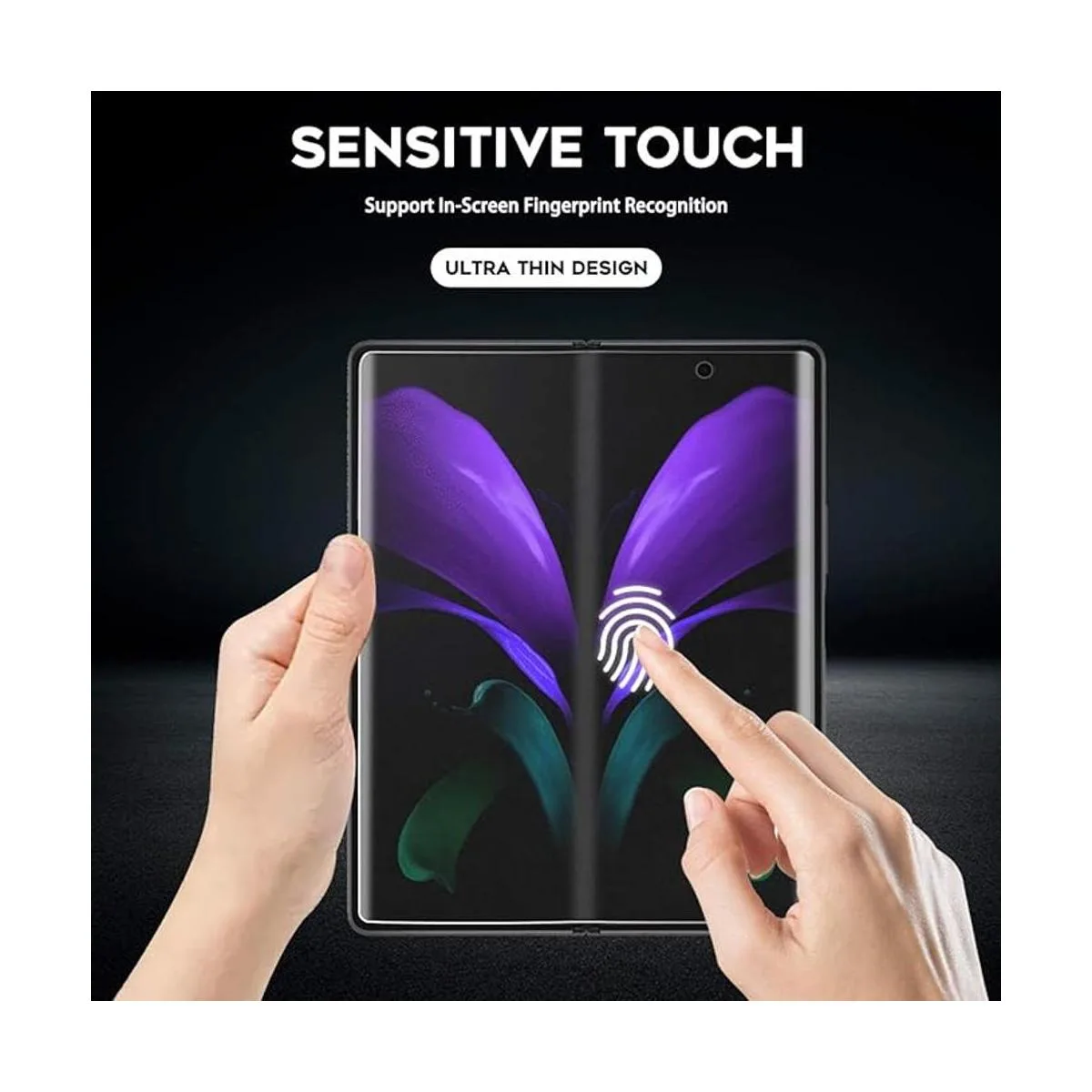 Protector de pantalla TPU de nuevo diseño: se adapta perfectamente a Samsung Galaxy Z Fold2 5G. 2 juegos significa que el paquete tiene 2 protectores de pantalla frontales PTE y 2 protectores de pantalla interiores. Nota: No es compatible con Samsung Galaxy Z Fold 3 5G.