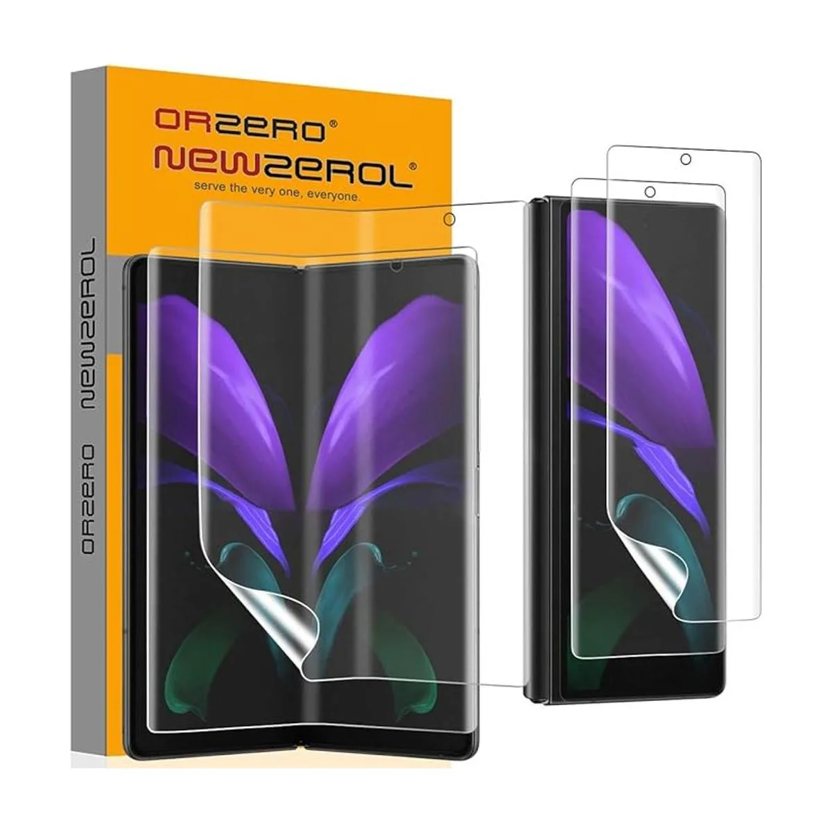 Orzero 2 juegos de 4 unidades compatibles con Samsung Galaxy Z Fold 2 5G no para Z Fold 3, 2 protectores de pantalla frontal de TPU suave y 2 protectores de pantalla interior no vidrio, alta definición sin burbujas reemplazo de vida
