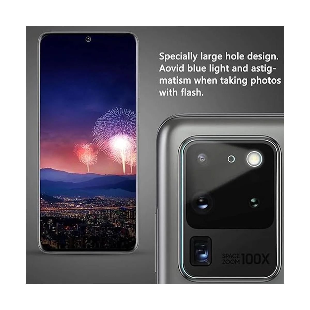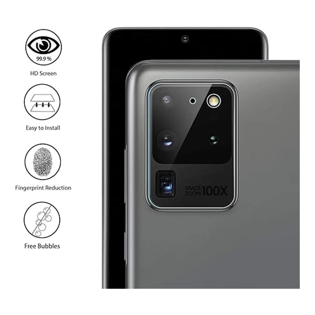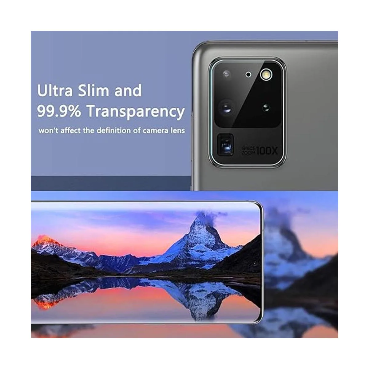 Protector de lente de cámara de vidrio flexible no de vidrio templado especialmente diseñado para Samsung Galaxy S20 Ultra.