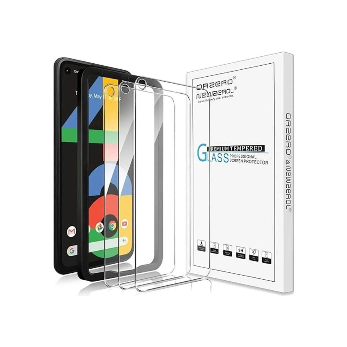 Orzero Protector de pantalla de vidrio templado para Google Pixel 4a con marco de alineación, dureza 9, HD, antiarañazos, reemplazo de por vida.