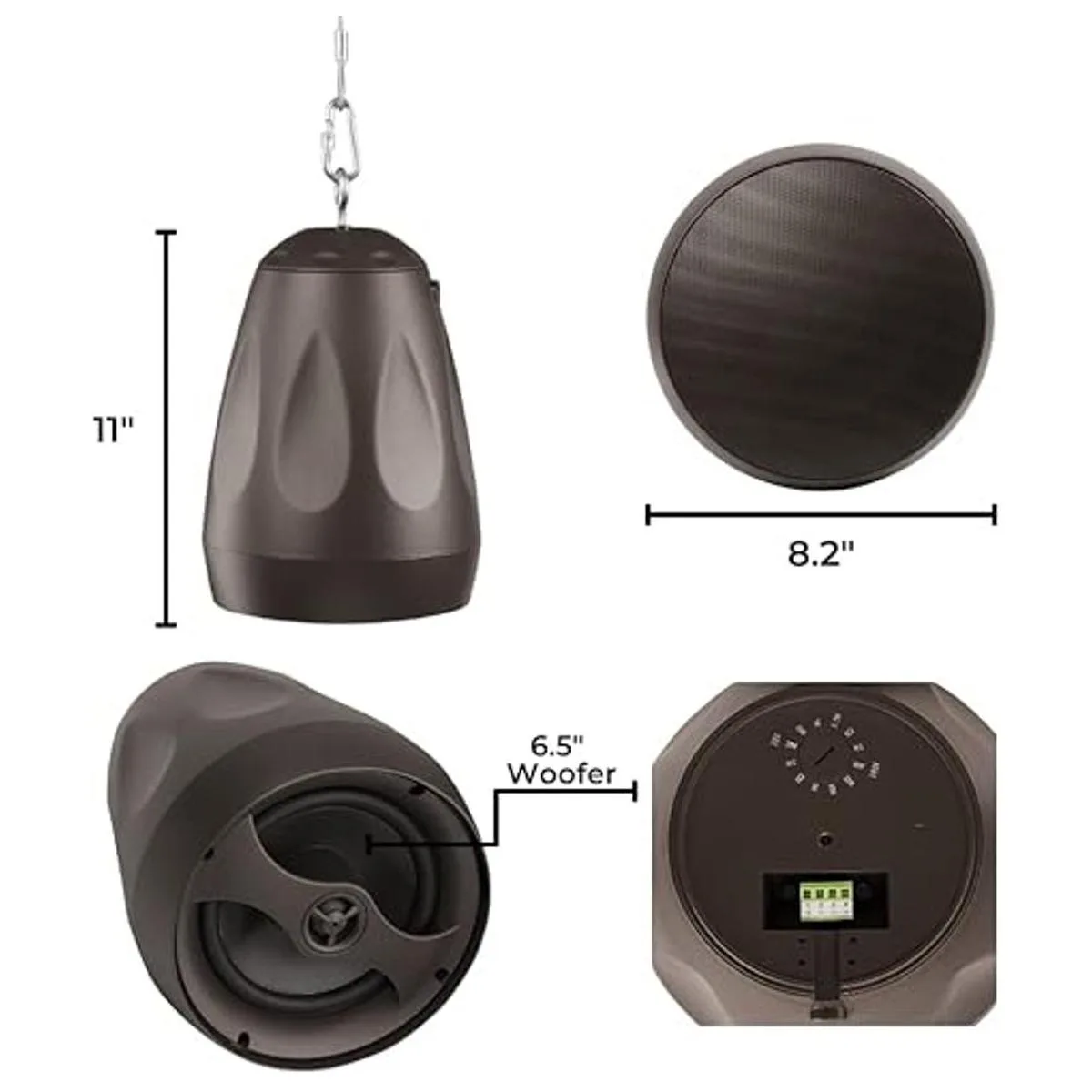 Cobertura de sonido inmersiva: altavoces colgantes duraderos para interiores y exteriores con woofer de polipropileno de 6.5 pulgadas y tweeter de cúpula de seda de 1 pulgada para cobertura de sonido de 120 grados en entornos domésticos y comerciales