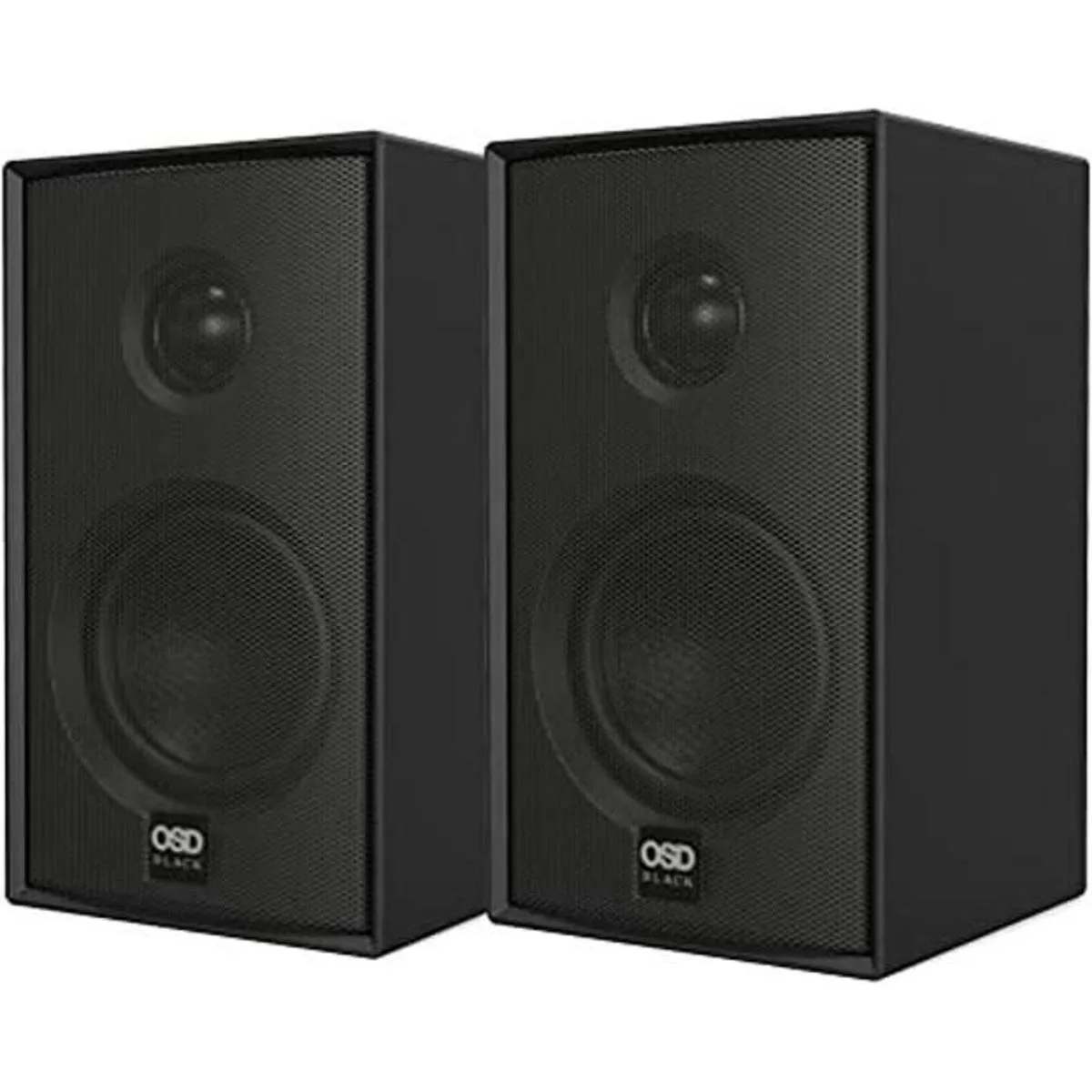 OSD Nero MODQ2 Altavoces para monitor de estantería de 100 W, fibra de vidrio de 3 pulgadas, tweeter de cúpula de seda de 1 pulgada para cine en casa, escritorios, juegos negro, par