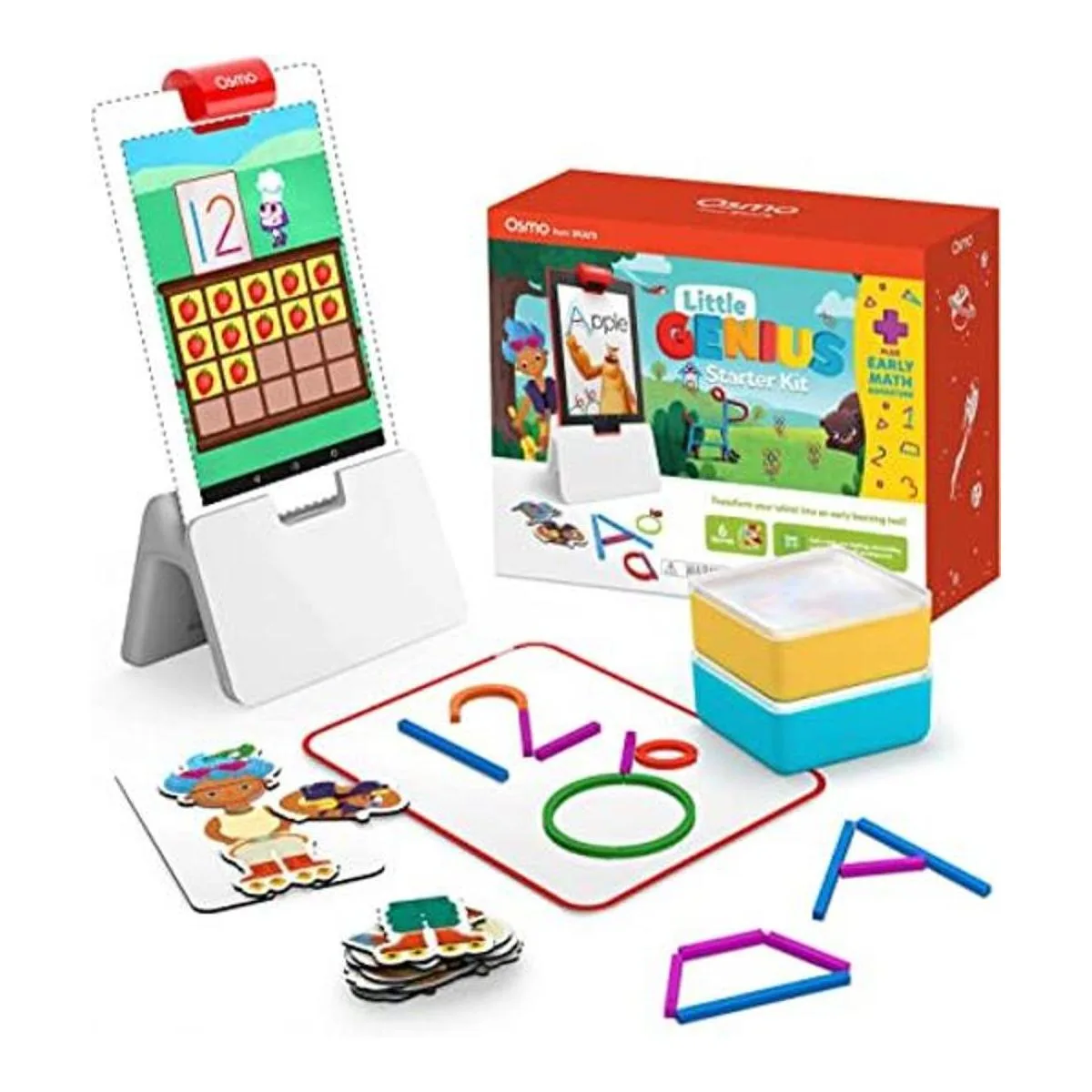 Osmo Little Genius Kit de inicio para tablet Fire aventura matemática temprana 6 juegos educativos, edades de 3 a 5 años, formas y fonética, regalos de juguete STEM, para edades de 3, 4 y 5 base de tableta Osmo Fire incluida, exclusivo de Amazon