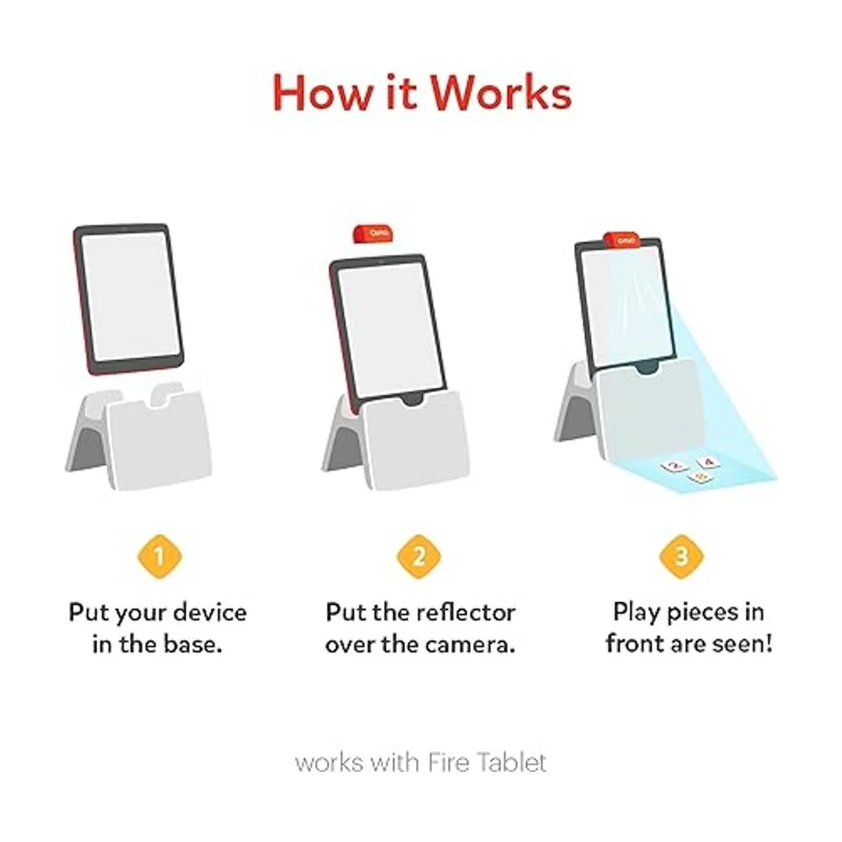 El embalaje real del producto puede variar del de la imagen mostrada. Los componentes dentro de la caja siguen siendo los mismos. OSMO IS MAGIC: juegos de aprendizaje llenos de diversión y galardonados. Los niños interactúan con piezas reales de mano y tableta Fire, dando vida a las piezas y acciones de juego de un niño no es necesario WiFi para jugar. Se incluye una base Osmo, una tableta Fire no está incluida, ambos son necesarios para jugar.