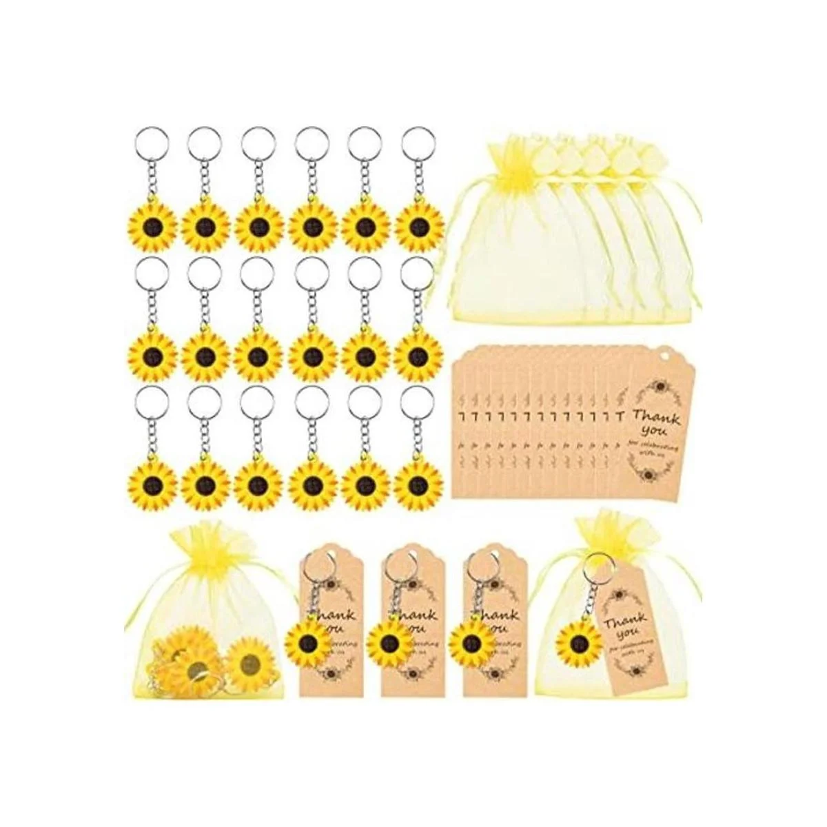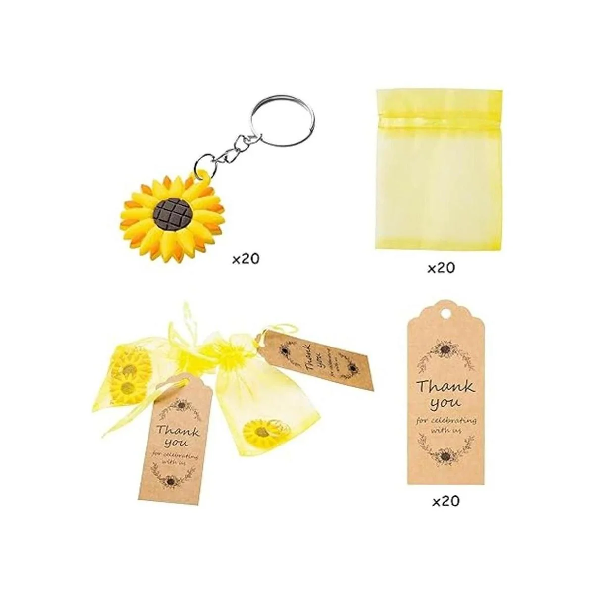 OSNIE 20 juegos de recuerdos de fiesta de girasol incluyen llaveros, bolsas de organza, etiquetas de papel kraft de agradecimiento, recompensas escolares, suministros de fiesta de girasol para cumpleaños, fiesta temática de verano, novia, boda, baby shower, regalos de regreso