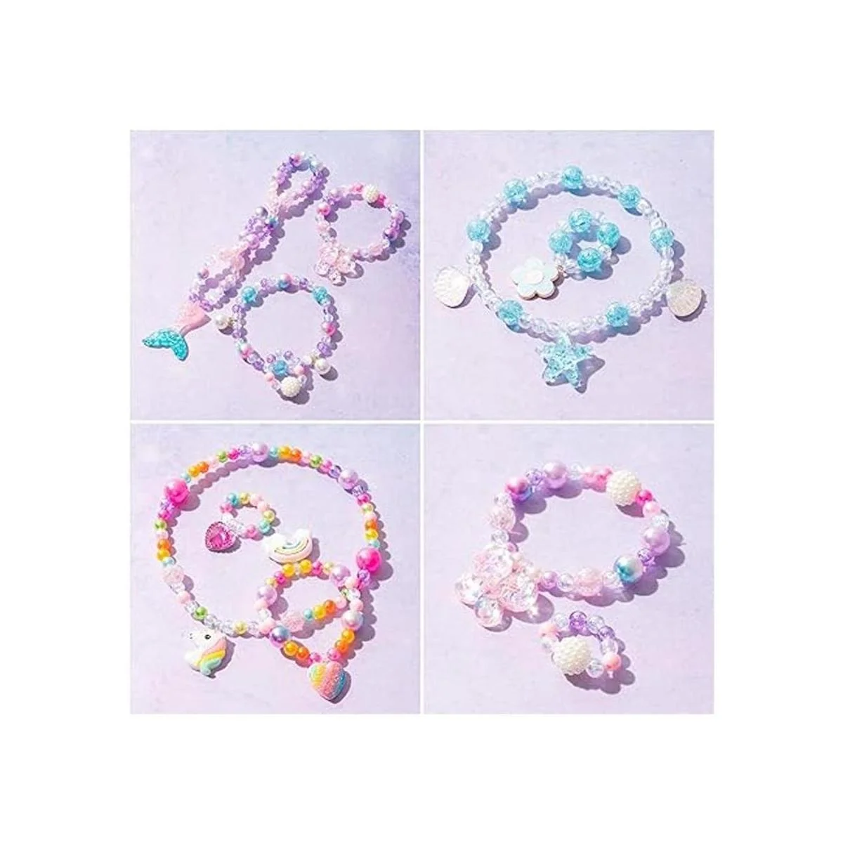 Varios dijes y cuentas: este kit contiene una variedad de delicados encantos, como sirena, estrella de mar, concha, unicornio, arco iris, mariposa, flor, corazón, perla, etc. Y las cuentas vienen en diferentes tamaños y colores. Permite a los niños dar juego completo a su creatividad y crear una pieza única de joyería para sí mismos
