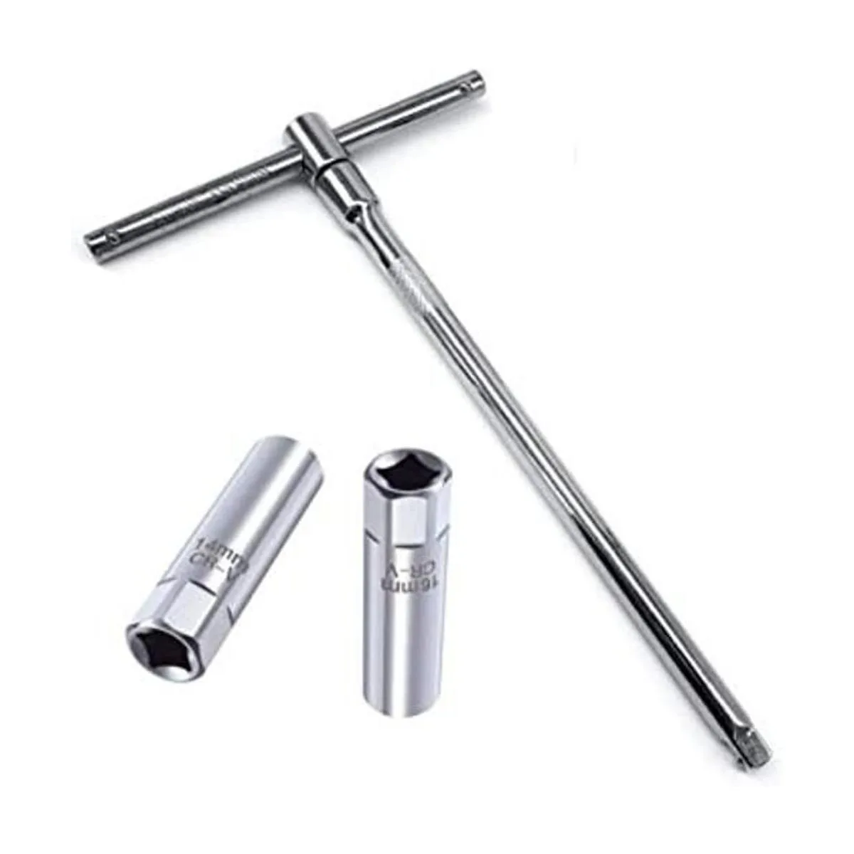 Función: juego 3 en 1; enchufe de bujía de 12 puntos de pared fina de 0.551 in y 0.630 in; llave de mango en T de 3/8 pulgadas.