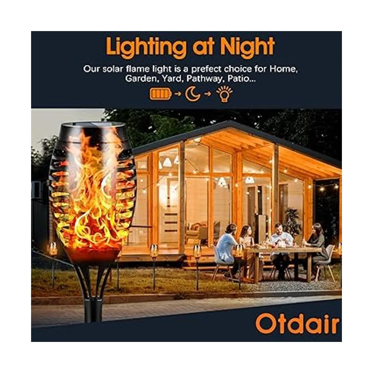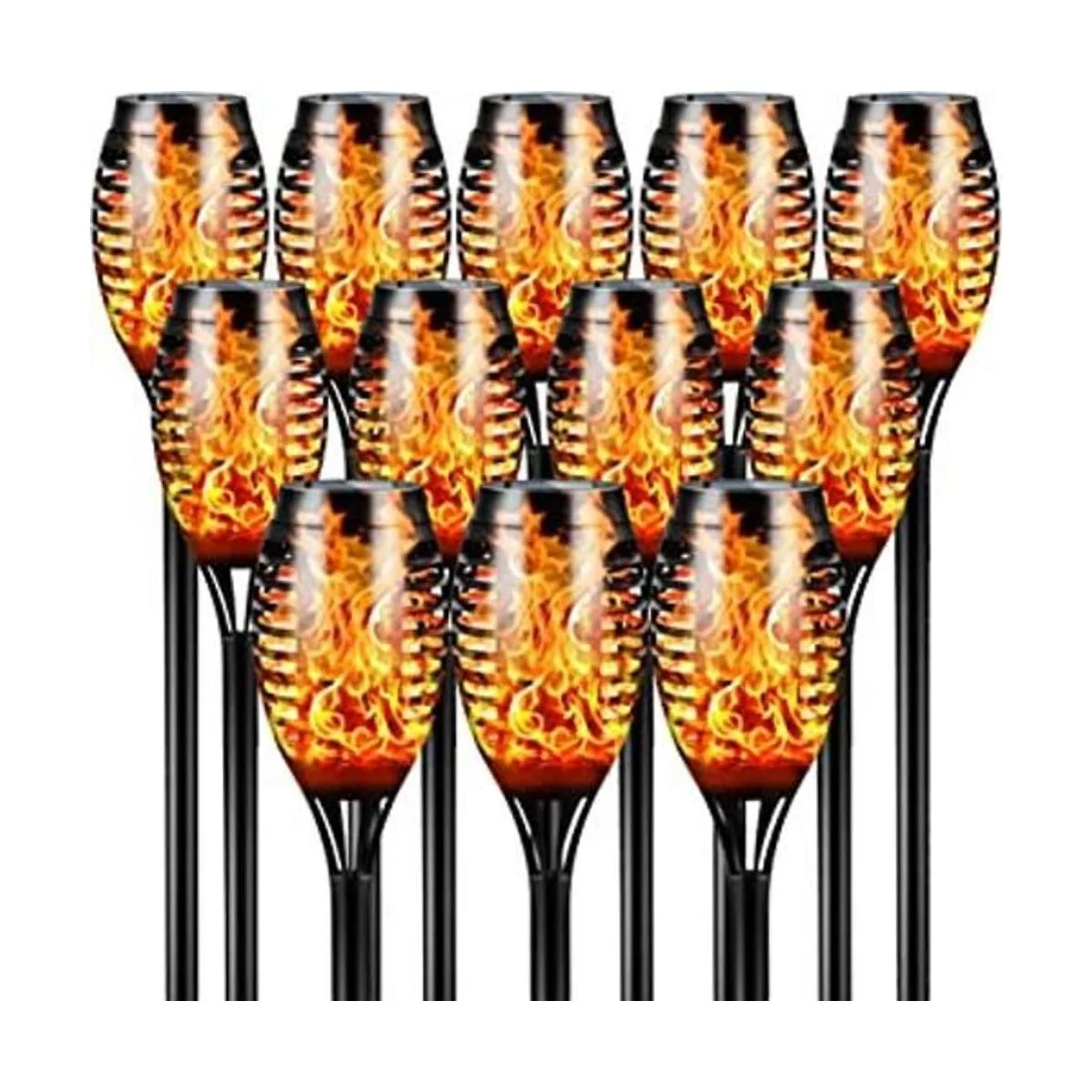 WIDELY USE EASY SET UP Flickering flame solar torch is a prefect choice for Home, Garden, Yard, Pathway, Walkways Landscape Decorations and garden party, camping, barbecue, wedding, Christmas, Halloween festival, which could provide a perfect campfire ambience. No wiring required, simply install the torch solar lights anywhere you like and enjoy the real and safe Flames
