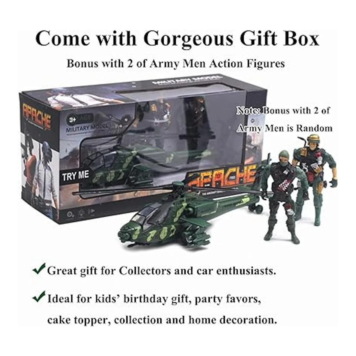 OTONOPI Helicóptero militar tire hacia atrás Ejército avión juguetes con luces y sonidos Diecast Fuerza Aérea modelo avión cumpleaños regalos de Navidad para niños y niñas, bono con 2 de figuras de acción de hombres del ejército